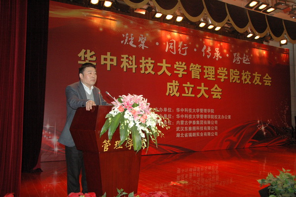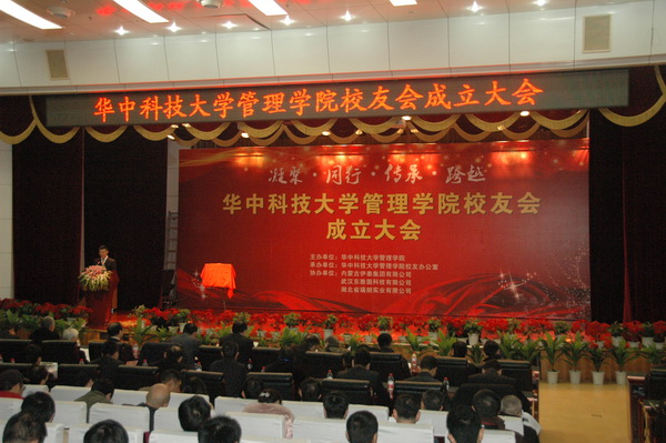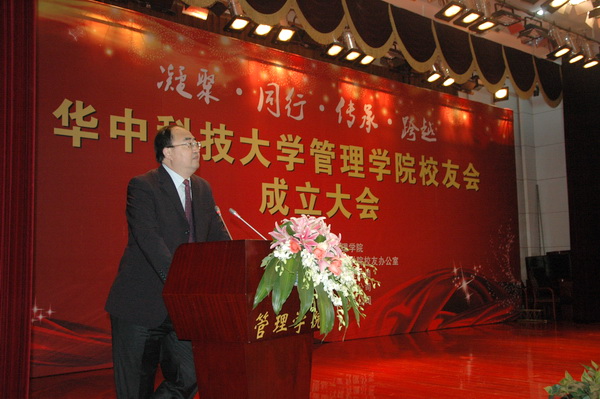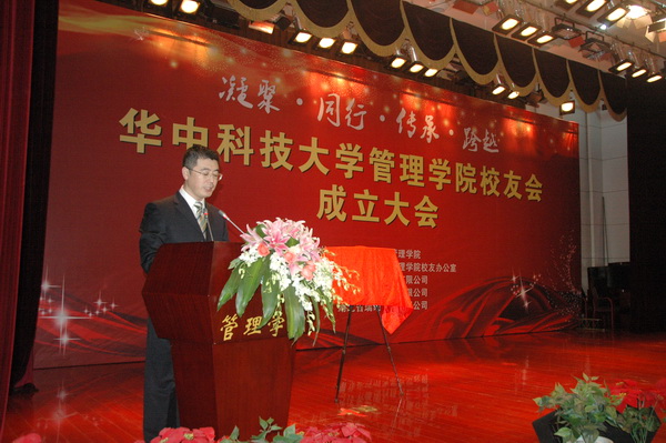 在嘹亮的国歌中,校友会成立大会正式拉开序幕。金凌志向大会作管院校友会筹备工作报告,随后,周智皎、金凌志分别宣读《华中科技大学Bevictor伟德校友会章程(草案)》及《华中科技大学Bevictor伟德校友会第一届理事会名单》并提请大会表决通过。全场无异议鼓掌表决通过后,梁茜及王宗军为我院校友会揭牌并相继致辞。梁茜表示校领导李培根、路钢都曾高度评价校友对于学校工作及声誉的重大影响,他号召应将校友工作融入到日常工作,重点落实到各个院系,实现全员参与、全时开展。对于Bevictor伟德校友会工作走在学校院系前头的做法,他给予充分肯定及赞扬。王宗军回顾了学院发展历程,对今年Bevictor伟德能顺利成为校总会常务理事单位感到光荣,并宣誓作为我院校友会首任会长,他必将积极建设校友工作,传承创新发展思路及举措,与广大校友交流整合信息,实现资源共享、回馈母校。