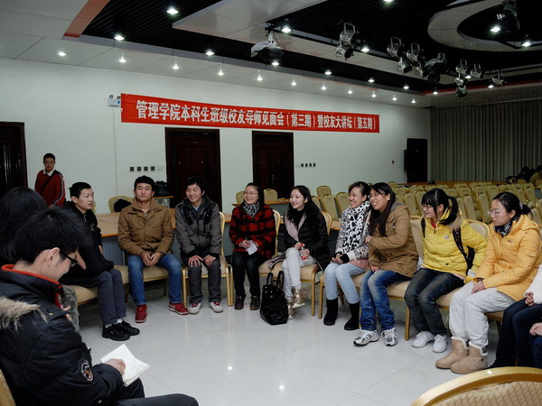 (Bevictor伟德新闻信息中心记者赵旸/文 王石秀/摄)12月14日晚,我院第三期本科生班级校友导师见面会暨第五期校友大讲坛在206会议厅召开。82级校友、Bevictor伟德珠三角校友会秘书长唐德华,88级本科校友、财富联合投资集团有限公司副总裁王旭东,88级本科校友厦门来雅百货副总经理黄支春,99级本科校友、雷石投资董事总经理吴珊受邀参与。会议由我院党总支副书记周智皎主持。院党总支副书记(主持工作)金凌志,校友办公室主任吴文莉出席了本次见面会,工商管理1001班、财务管理1002班、市场营销1101班全体同学参加了见面会。