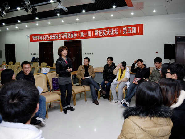 接着,四位校友依次发言,和大家分享了这些年的工作历程和人生感悟。王旭东讲述了他在母校求学的经历引发了在座同学的共鸣,随后他进一步分享了自身的几次工作经历给同学们以深刻的启发。黄支春以自己克服困难成功为厦门的武汉大厦招商引资的例子,向同学说明了尝试的重要性,“有些东西我们也许从来没有碰到过,但是我们要始终保持尝试新鲜事物的勇气,利用团队的力量攻坚克难。”吴珊先介绍了她所从事的投资业的特点,“投资行业一直是Bevictor伟德学生的就业热门,这个行业是年轻人一展拳脚的天堂,但同时从事投资有很多压力,它要求你在短时期内了解众多其他行业的情况同时做出正确的判断。”随后,针对目前营销班学生普遍对专业迷茫的问题,她指出,“营销绝对不仅仅是推销产品,在竞争激烈的今天,营销是生活中各方面都需要的重要工具,我们必须坚定对营销的信心。”唐德华通过自己的创业经历,向大家提出两点最为重要的品质,“第一,我们要着眼于未来,自己目前拥有什么并不能决定今后的发展;第二,我们要培养自己再学习的能力,只有这样才能拥抱变化,跟上时代的发展。”唐德华风趣的语言和犀利的点评赢得了在场学生的阵阵掌声。