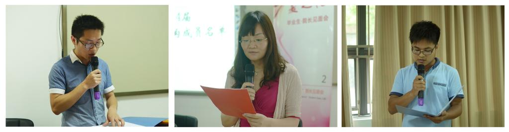 继学工组辅导员陈晓东介绍2014届同学会筹备历程及吴文莉宣读同学会组织机构成员名单后,王宗军、杨治、周智皎为2014届各地区同学会会长颁发聘书。2010级学生、2014届同学会总会长李栋梁代表2014届同学会郑重宣誓。