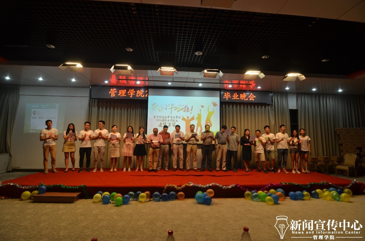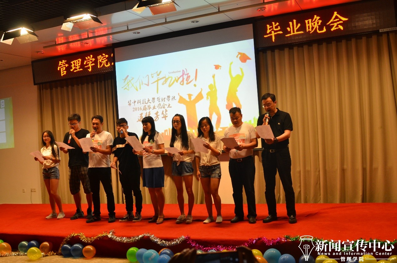我院党委副书记周智皎,生产运作与物流管理系系主任刘志学教授,工商管理系系主任常亚平教授,会计系系主任刘启亮教授,财务金融系系主任薛明皋教授,毕业班级班主任张千帆教授、谭志加副教授、郑长军副教授、王诗才副教授,管理科学与信息管理系马辉民教授、财务金融系吴文莉副教授以及82、89级的校友唐德华、黄俊华、李俊、梁文红和学工组全体辅导员参加了此次晚会。