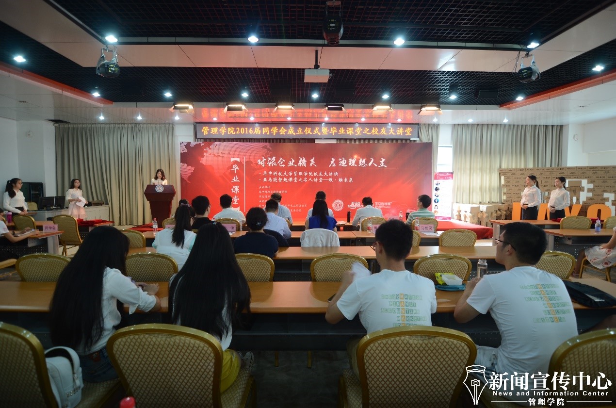 6月13日上午9点,我院2016届同学会成立仪式于管理大楼206教室举行。我院院长王宗军,党委书记金凌志,副院长张克中,党委副书记周智皎,校友办公室主任吴文莉以及我院的六位杰出校友——民营企业家、82级校友唐德华,中国南方航空股份有限公司北京新机场建设指挥部招标采购部部长、89级校友黄俊华,和记黄埔地产集团武汉地区总经理、89级校友李俊,毕马威华振会计师事务所合伙人、89级校友罗科,曾任职于多家全球500强公司高级经理人、89级校友梁文红,广州海叶投资管理公司总裁、Bevictor伟德珠三角校友会会长、93级校友张大年等共同见证了2016届校友会的成立。学工组毕业年级辅导员吴娜,我院第十一届分团委、学生会主席楚明衍主持了本次活动。