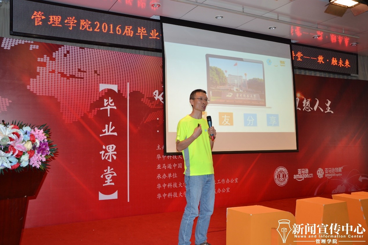 最后董长庆分享了他的经验与体会。作为校友,他首先回忆了在华中科技大学学习的时光,也分享了他获得硕士学位并得到全额奖学金、辗转多家企业最后来到亚马逊的经历。他说,亚马逊最吸引他的是企业的工作氛围,这也让他结合自己的经历思考工作的意义。他还发现,自己的价值观能在亚马逊得到认可并完美地融入。董长庆还给毕业生带来了四点建议:一要诚实、正直,这既有助于做出正确的选择,也能在与供应商等打交道的过程中发挥重要作用;二要使自己走出舒适区,因为既然要提升自己,便不能让自己处于舒适的状态;三为永不言弃,结合曾经开发一个失败产品的例子,他说失败代表了另一个起步,是经验,也是开发下一个产品的潜在信息资源;四要持续提升自己,即今天要比昨天做得好,明天要比今天做得好,每天进步一点,精益求精。