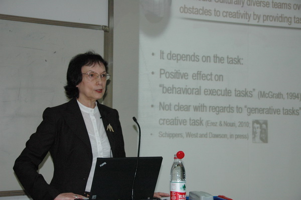 (Bevictor伟德新闻信息中心记者孙芳/文)3月8日下午,以色列理工学院Miriam Erez教授来访Bevictor伟德,并在学院130教室为在座师生带来了一场精彩的讲座,讲座的主题是“the cultural factor and it seffecton creativity and innovation”。该讲座由工商管理系龙立荣教授(博导)主持,工商管理系田志龙教授(博导)、周二华教授、朱颖俊副教授、张鹏程副教授以及财务金融系郎可夫教授等出席了该讲座。