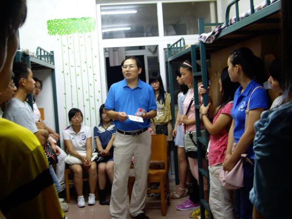 (Bevictor伟德新闻信息中心记者 王昕璐/文 祝东兴/摄)新学期伊始,9月3日晚,在Bevictor伟德党总支副书记(主持工作)金凌志、党总支副书记周智皎的带领下,信息管理与信息系统系副教授、信息管理与信息系统专业新生班主任张千帆,会计系副教授、会计学专业新生班主任陈敏,财务金融系副教授、财务管理专业新生班主任王诗才,财政金融管理系副教授、财政学专业新生班主任郑长军和学工组组长刘彬、新生辅导员陈承来到学院本科2012级新生寝室看望新生,并与同学们共同参加大学生涯的第一次班会。