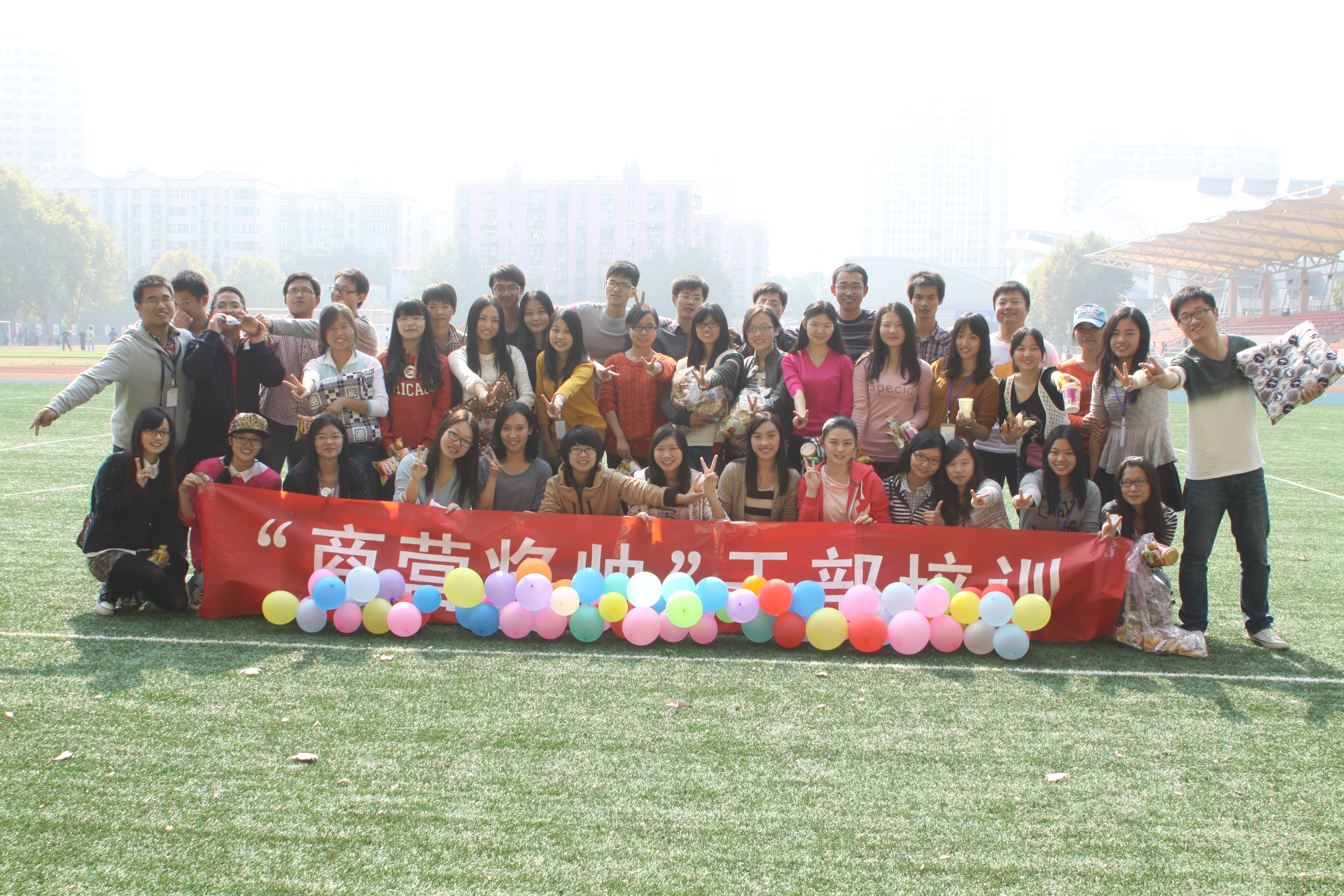 (文/侯雪洁 摄/王石秀)Bevictor伟德研究生会2013-2014年第一学期“商营将帅”第十期干部培训之素质拓展活动于2013年11月6日上午在中心操场成功举行,研会成员都积极参与其中,本次干部培训形式新颖独特,活动内容丰富多彩,在一片欢乐的气氛中画上了圆满的句号。