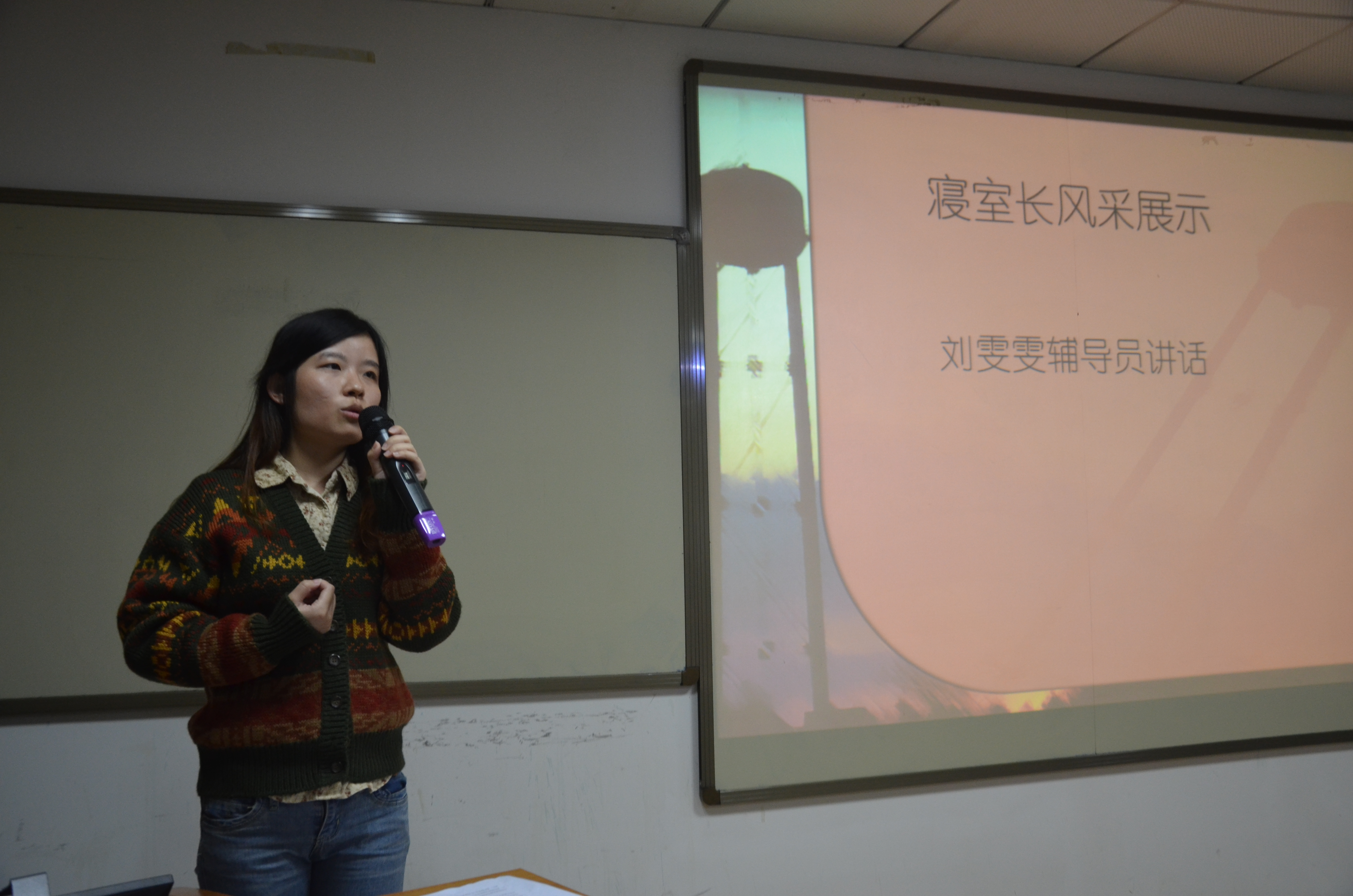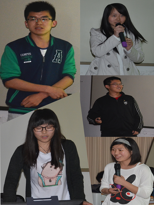 财务1201班的付欣宇向大家介绍了寝室里独特的音乐角、绿色角、清洁角和他们的寝室文化,并告诉大家作为寝室长重在于生活点滴中表现出对室友们的关爱与尊重。物流1201班袁茂的寝室装饰的非常精致漂亮,寝室里的棋文化夺人眼球。把寝室命名为“好来屋”的财务1201班曹野,他们的寝室非常洁净,一直是男生寝室卫生评比中的最高分。物流1102班的梁亚爽别出心裁的带来了一段韩语的自我介绍。物流1202班的陈雪介绍了自己的学习、义工、兴趣等情况,并告诉大家她和室友把5月11号定为“511寝室”的寝室日,非常独特。
