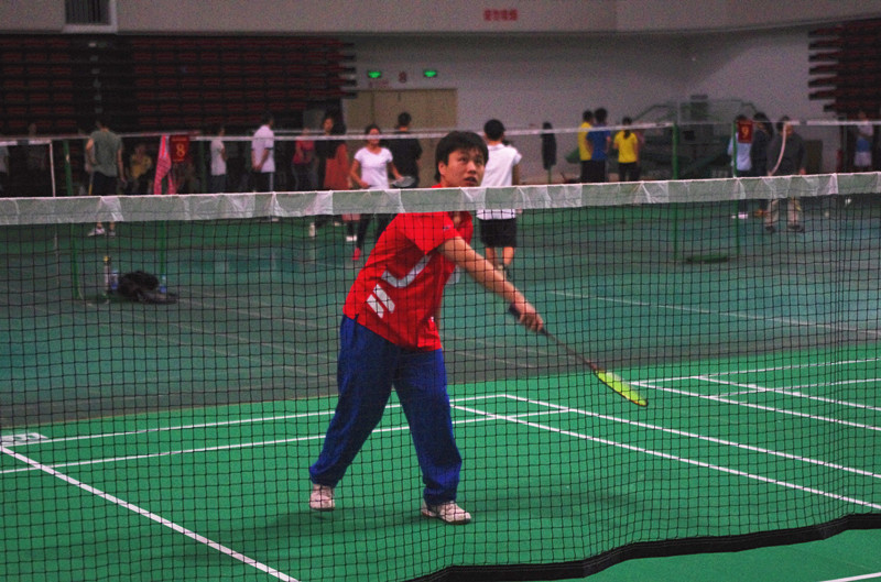 只见参赛者纷纷在场上激情挥拍,跟着球的轨迹在场内灵活地变换步法,时而在球网边缘短吊,时而飞速跑回边线接球,汗水随着球拍的挥舞浸湿了衣服。场边的观众时而欢喜雀跃地呐喊、鼓掌,时而紧张焦急地指挥、高呼。等待下一场比赛的选手在场边一边观察战况,一边不忘时常挥动球拍,练习步法。比赛紧张愉快地进行,最终财务队和物流队更胜一筹,晋级决赛。