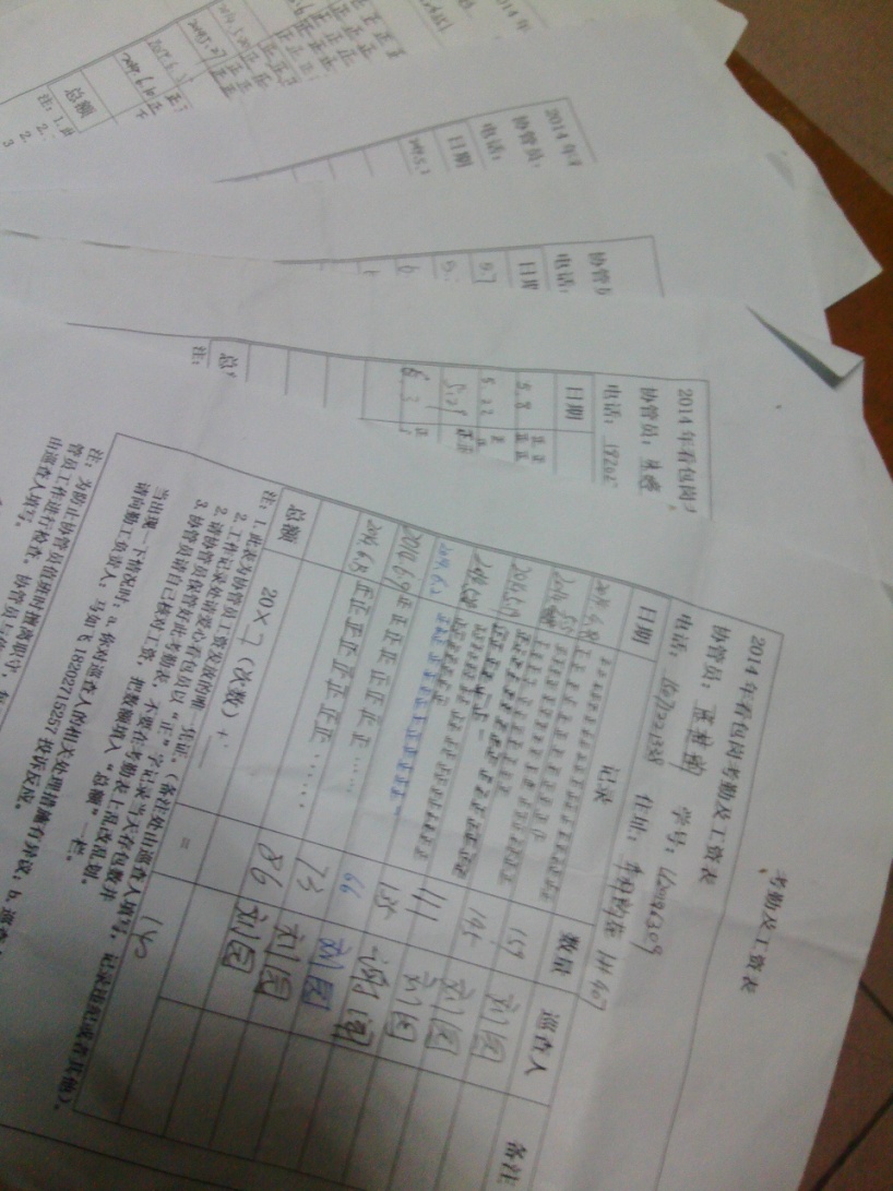 之后,由部员马如飞统计看包员和巡查员们的工作记录,并为之发放工资和奖励。每天存包数量超过50,最多次数达159个,一个学期累计服务同学近万人次。