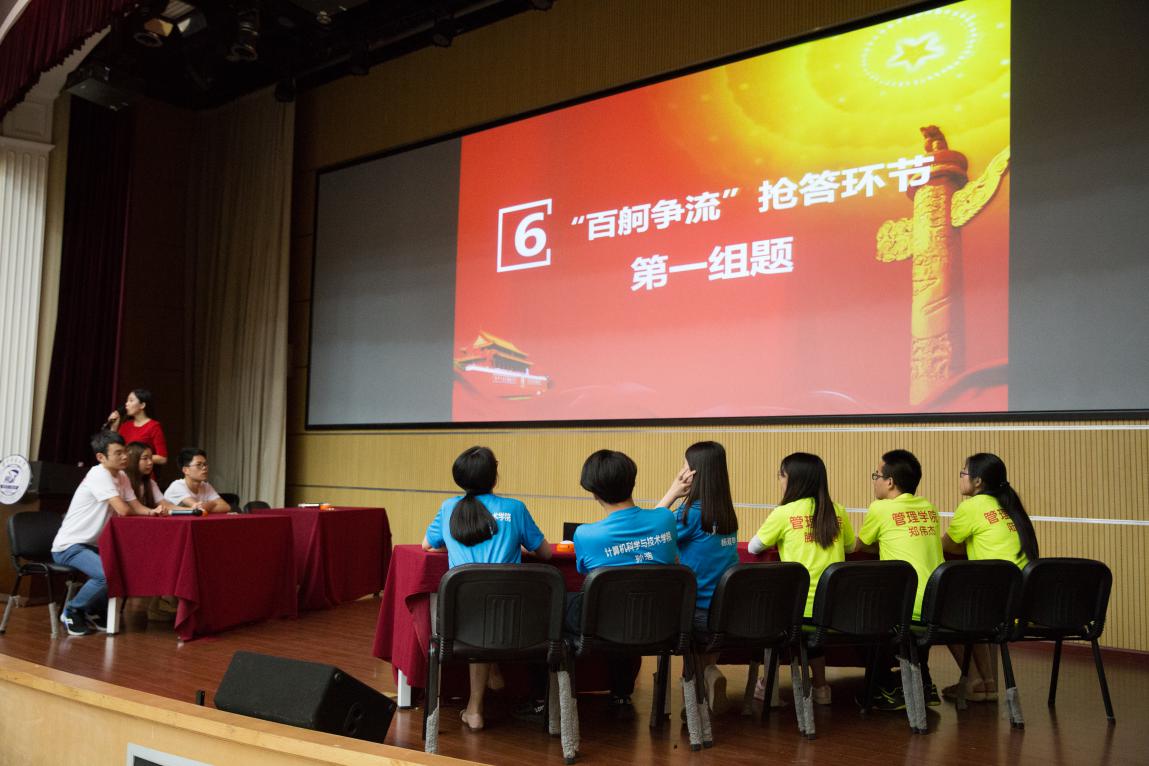比赛开始前,师生一齐观赏了党务中心精心准备的宣传视频,并欣赏了《党的赞歌》诗朗诵,在一曲振奋人心的国歌奏唱中,比赛正式拉开帷幕。本次决赛分为“你追我赶”比拼环节、“百舸争流”抢答环节和党史“飞花令”三个环节,三轮总分累计决出优胜者。