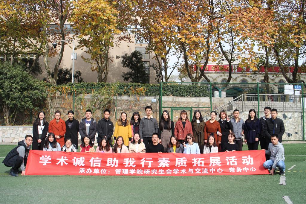 11月25日上午,由我院学术中心与常务中心联合举办的主题为“不忘初心·诚信前行”的户外素质拓展训练在中心操场顺利开展,我院30余名研究生参加了此次训练。