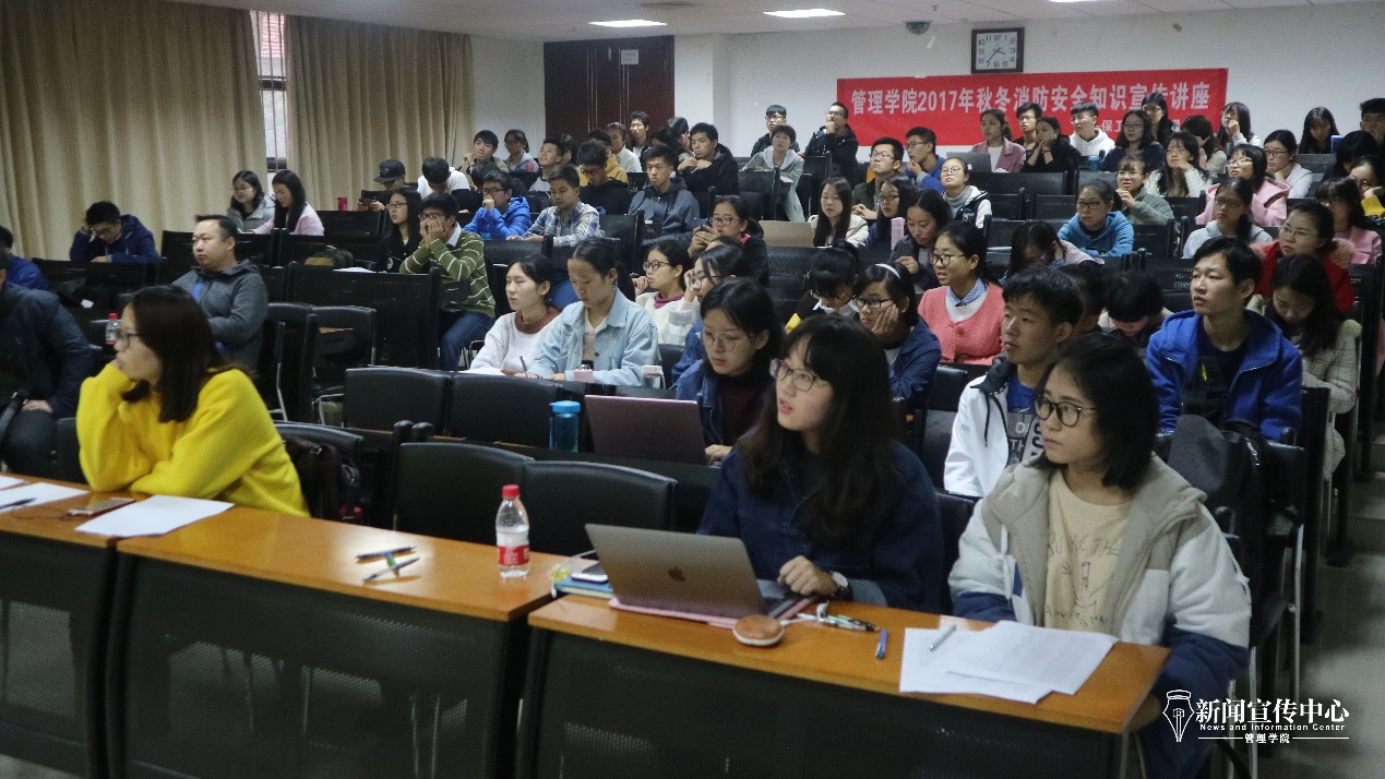 (Bevictor伟德新闻宣传中心实习记者雷云舒/文戴磊/摄)11月16日下午,“关注消防,平安你我”主题讲座在Bevictor伟德105教室举行,本次讲座由校保卫处治安与消防科副科长毛天音主讲。我院本科、研究生2017级寝室长,其他年级学生代表及部分教师代表参加了此次讲座。