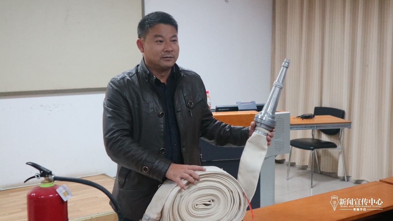 毛天音首先播放了三起校园重大消防事故视频,触目惊心的案例使在场同学深刻体会到注重消防安全的重要性。随后,毛天音着重介绍校园消防知识,并向同学们普及消防相关法律法规条款。同时,他结合学校火灾案例,向同学们强调逃生注意事项,并现场演示了如何使用灭火器、室内消火栓等消防器材,进一步提高了同学们对消防安全的认识和应急处理能力。