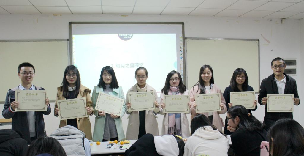 接下来进行的是每月之星的颁奖的环节,常务中心主席桂凯为各中心评选出的每月之星送上奖状,作为对他们工作的肯定鼓励,同时也激励了研会其他的成员继续努力。