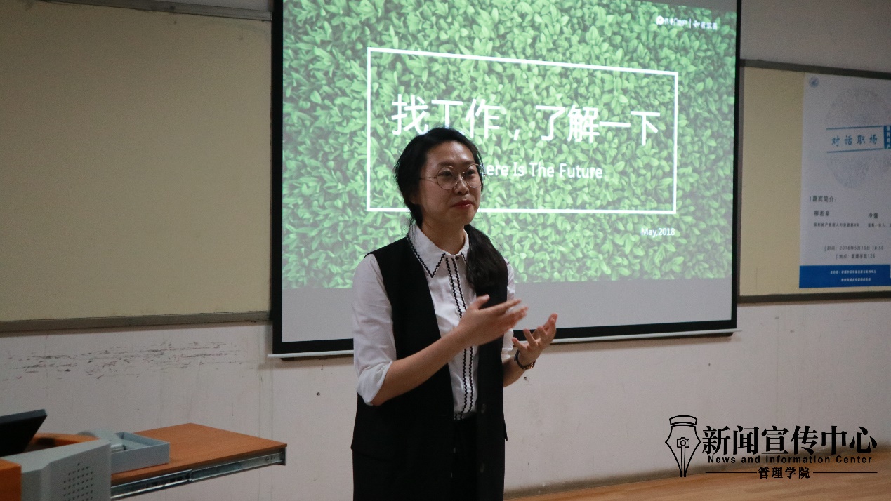 交流会伊始,柳淞泉就岗位选择与面试准备两方面进行了分享。她首先向在场同学抛出了“工作是什么,自己想要什么”的核心问题,从而引出了岗位选择的问题。对于岗位选择,她表示一方面要多经历以发现自己真正喜欢的事,另一方面也要平衡自己和家里的选择分歧。同时,对公司与岗位的了解程度也会影响选择的正确性。每个公司都有自己的文化,要通过仔细研究任职资格、工作内容以及实习或参观期间的实际情况去了解。努力寻找和自己匹配的公司与岗位,切忌只看岗位名称而盲目选择。在简历面试的准备阶段,柳淞泉表示在简历上要学会包装自己,学会多维度介绍自己,尤其应该展示自己与岗位匹配能力上的优势。