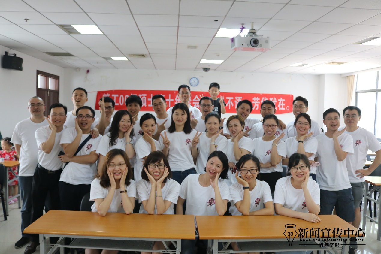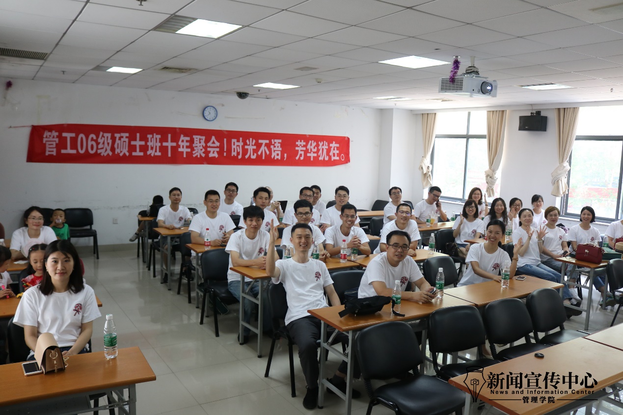 (Bevictor伟德新闻宣传中心记者郭晓旭/文蒋金洁/摄)6月17日上午,我院06级管工硕士班校友毕业十年后齐聚Bevictor伟德215教室,参加“时光犹在,芳华不语”主题班会。毕业十年,再度相聚母校,校友们的喜悦之情溢于言表。他们身着纪念衫,忆往昔峥嵘岁月,重温当年风采,气氛热烈活跃。本次主题班会由班长刘娟主持。