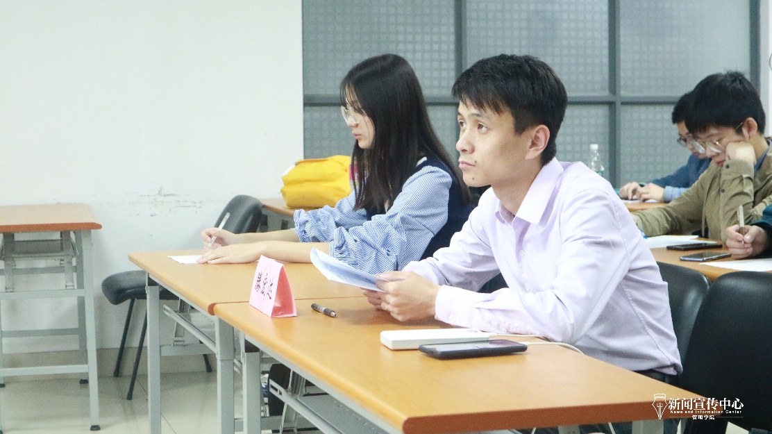 交流讨论后,与会人员依次分享自己的心得。分团委组织部部长柳欣表示对“永葆理想主义情怀”深有感触,她加入分团委的初衷就是为学生服务,在为学生服务的同时也提升自己的能力。WeSharp代表郭晶表示服务同学、为同学提供更好的科研学习渠道一直是WeSharp努力的方向。资助管理委员会代表曾晓裕则表示自律是资助管理委员会一直坚守的原则,资委工作中涉及奖助勤贷补,和学生利益息息相关,所以严谨自律是所有要求中的第一位。