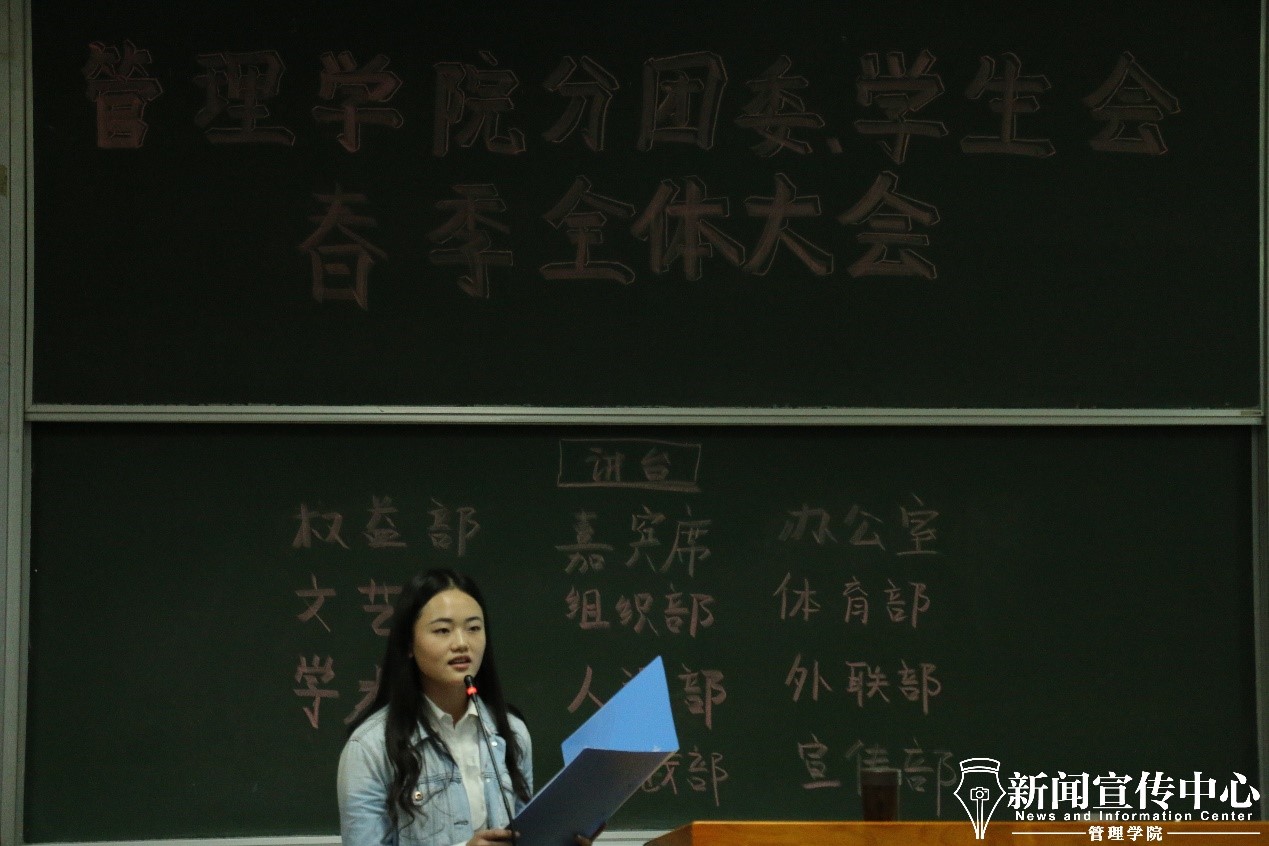 随后,第十三届分团委、学生会主席宗言上台发言,她对分团委、学生会的定位及发展方向提出了自己的观点。她说到,分团委、学生会是服务于全体学生的群体性组织,一切的活动开展都应以服务同学为根本,以提高学生的学习兴趣和技能为目的,一切以学生为中心。