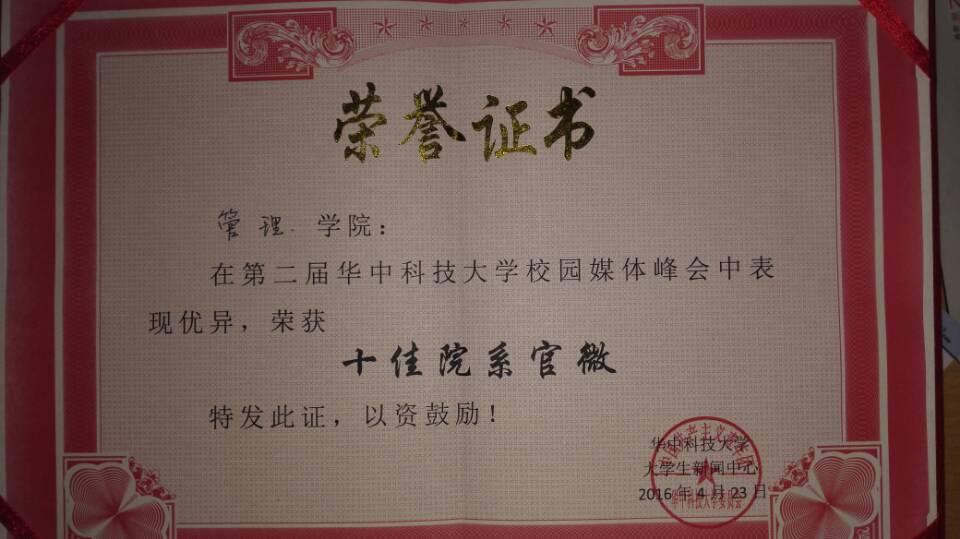 (通讯员苟梦笛/文)4月23日,我校举行了第二届校园媒体峰会。会上,我院以优秀的官方微信公众号宣传效果取得了“十佳院系官微”的称号。