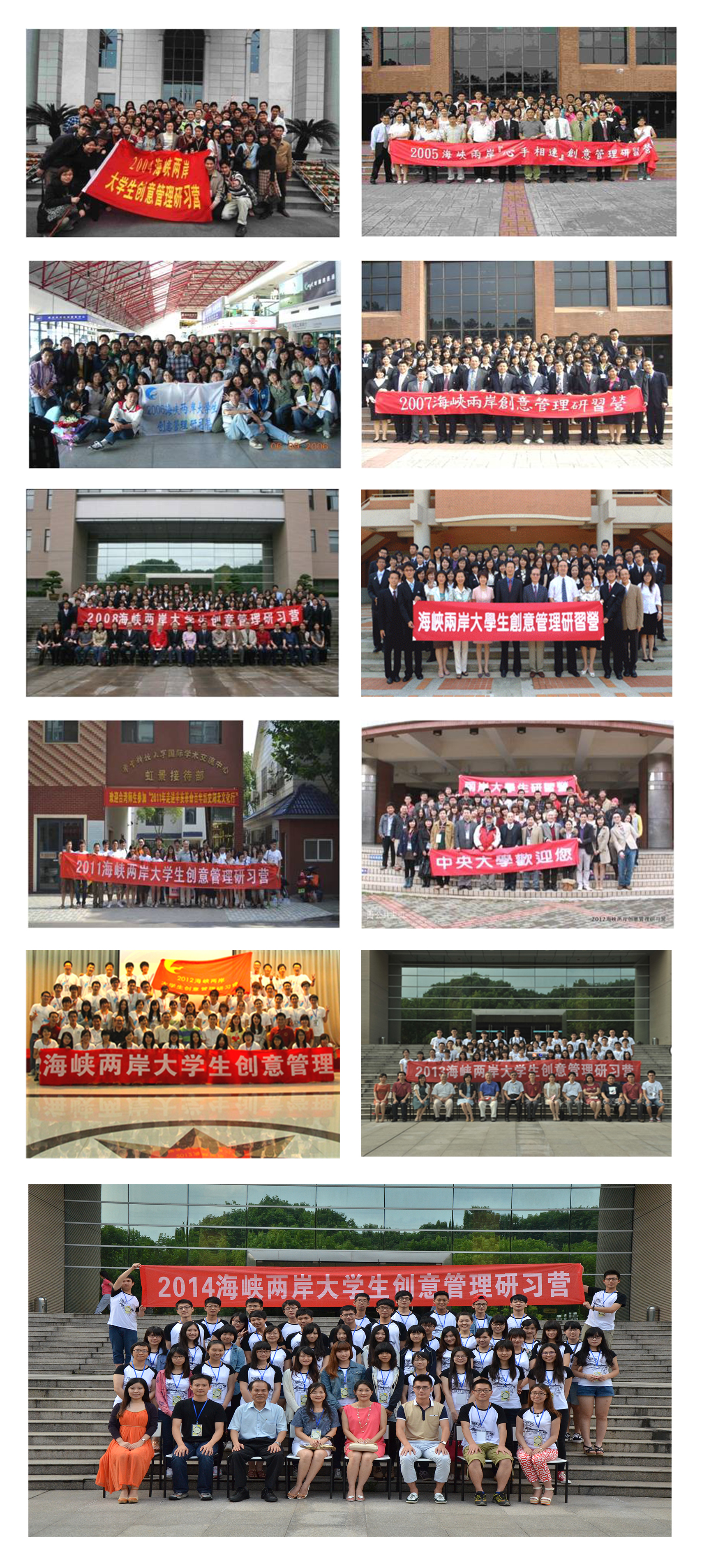 “海峡两岸大学生创意管理研习营”是以“创意管理”和“文化交流”为主题的管理学术交流与互访活动。由我校与台湾中央大学及台湾科技大学联合举办,我校Bevictor伟德承办。截止目前海峡两岸大学生创意管理研习营已成功举办了十二届,接待台湾访问团8次,组织赴台访问团4次。现我校将组建第九支接待团队,于七月初接待来访的台湾中央大学和台湾科技大学学生,并将主要从接待团队中选拔成员组建第六支出访团队,预计于八月中旬赴台交流。