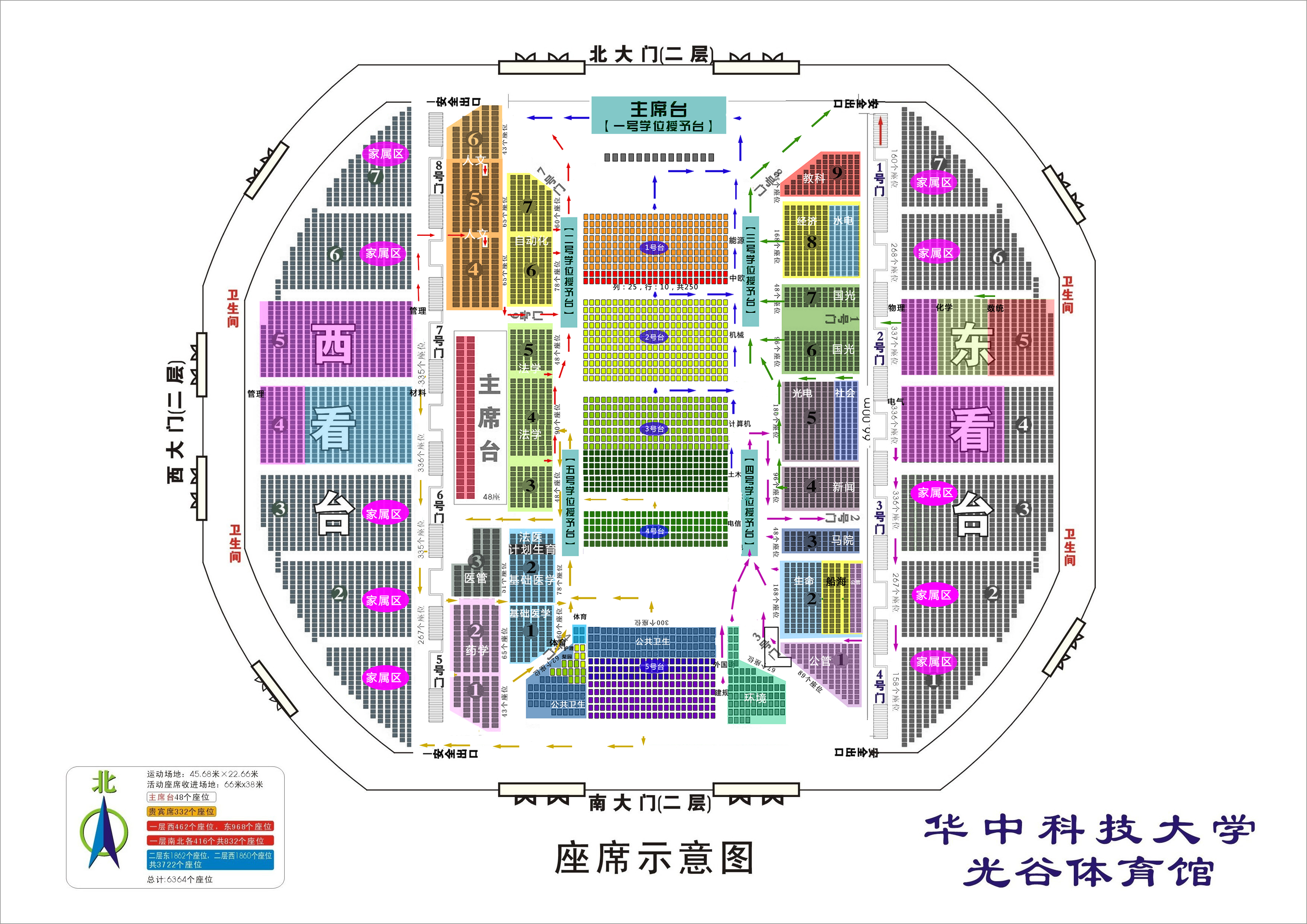 2、请各院(系)研究生辅导员务必亲自带队,副书记务必亲自参加。各院系按指定位置就坐(座位图见附件)。注意:到西部、基层和重点单位就业的领奖代表在中间方阵第一排就坐,各院系硕士、博士、留学生坐在一起(不分开坐),各院系参加学位授予的领导,8:20到体育馆内的嘉宾休息室进行导师服的穿戴。