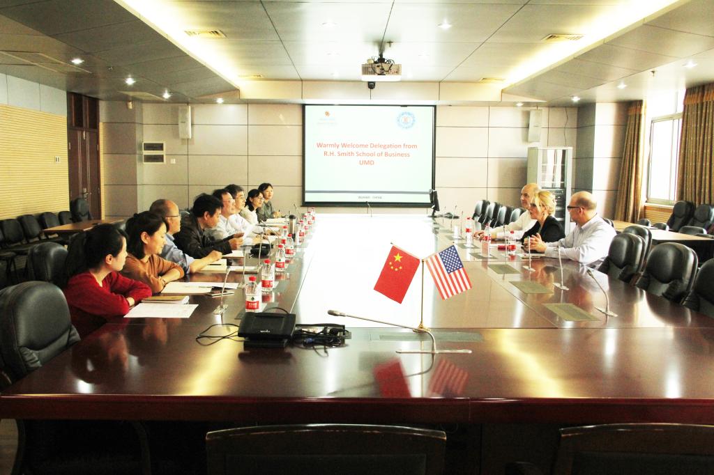 会议伊始,王海军代表学院向马里兰大学一行表示热烈欢迎。紧接着,金凌志介绍了我校的地理优势、学院建设、科研实力、师资队伍、教学项目等,并对与马里兰大学史密斯商学院进一步合作表示期待。