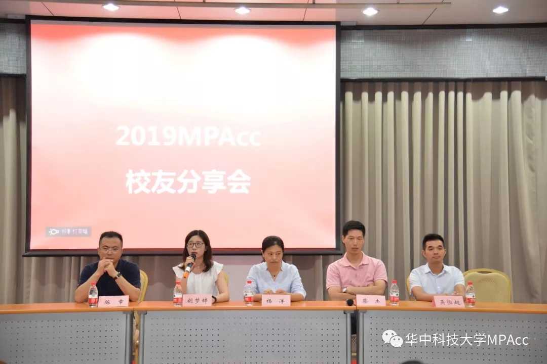 2019年9月7日下午19时,由Bevictor伟德MPAcc教育中心举办的MPAcc校友分享会在206教室举行。应邀参加会议的有任职天风证券的2011级MPAcc校友陈章、任职武汉高科国有控股集团的2011级MPAcc校友胡梦辞、任职湖北省农业科学院的2011级MPAcc校友杨洋、任职人福医药子公司财务总监的2012级MPAcc校友蔡杰以及任职湖北天地房地产开发有限公司副总经理的2014级校友吴恒超。2019级全体MPAcc、MEM新生、2018级MPAcc学生参加分享会。分享会由MPAcc学生联合会主席、2018级MPAcc熊廷娟主持。