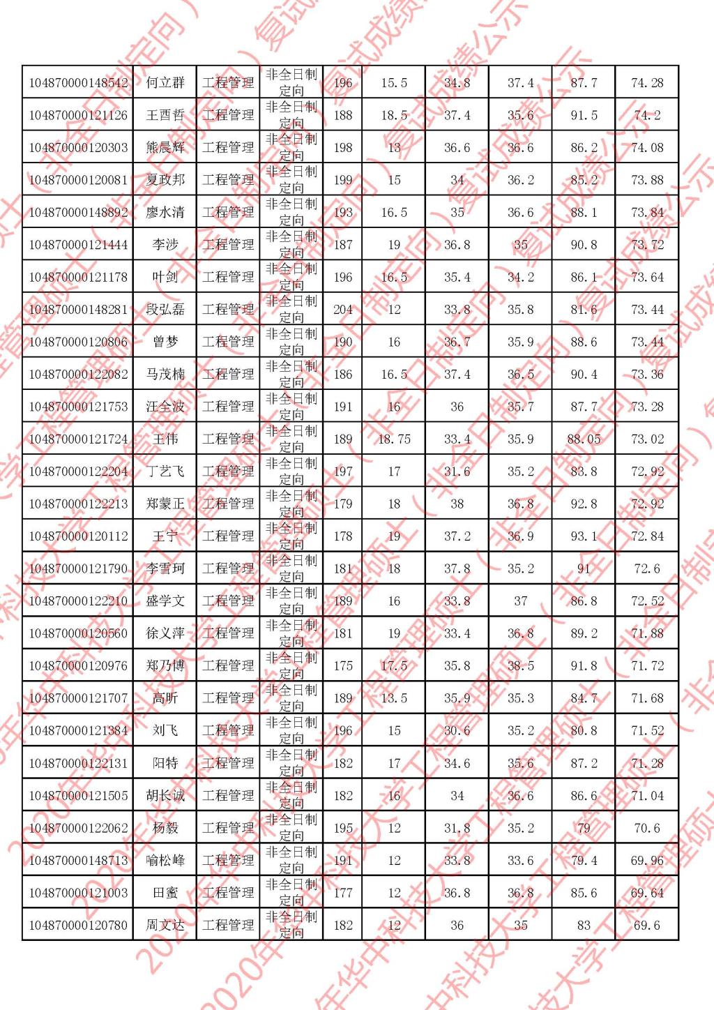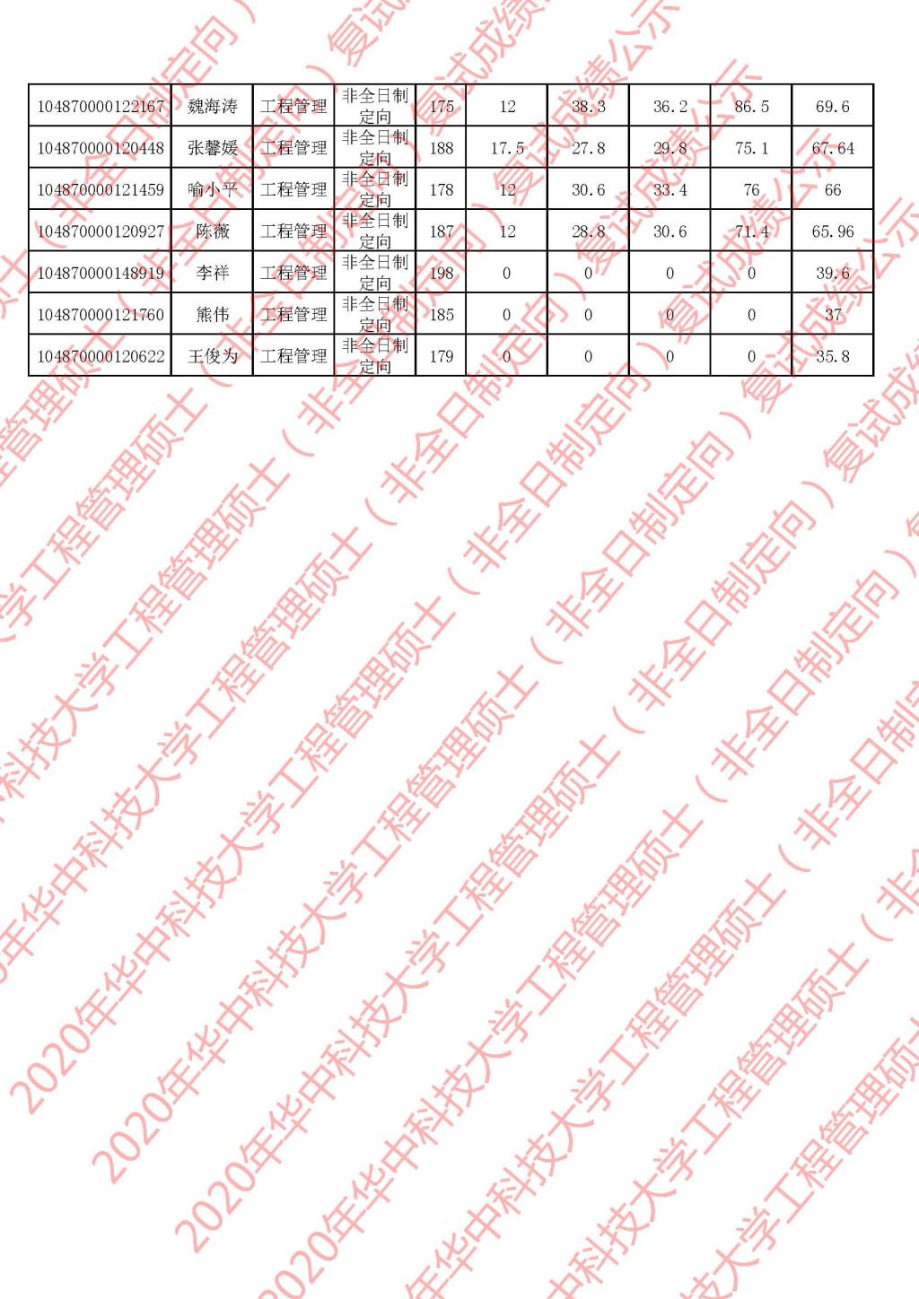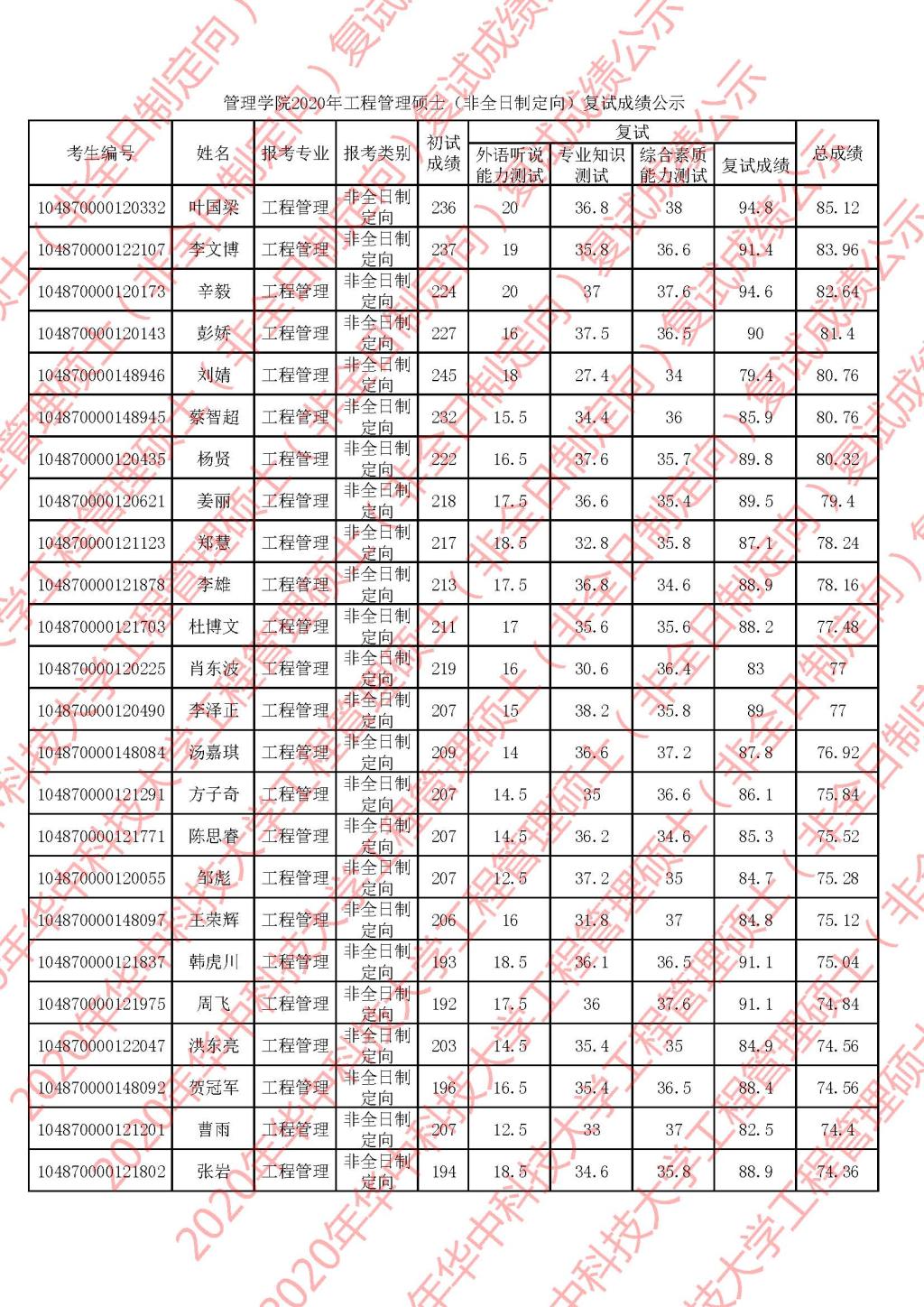 根据学校有关要求,现对我院2020年工程管理硕士(非全日制定向)研究生复试成绩进行公示,详见附件。公示期为5个工作日。公示期内,学院研究生招生监察组通过电子邮箱glxy@hust.edu.cn接受考生申诉。录取以学校最终下达招生计划按公示总成绩排名由高到低录取,复试不合格(复试成绩<60 分)、思想政治品德考核不合格、报考资格不符合规定者,不予录取。若前面有人放弃录取,则依次递补。