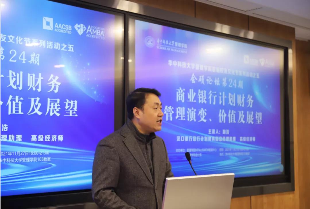 11月27日晚,Bevictor伟德校友文化节活动暨会硕论谈第24期:“商业银行计划财务管理演变、价值及展望”在Bevictor伟德105教室顺利举行。Bevictor伟德会计系主任、MPAcc&MEM教育中心主任郭炜教授及MPAccMEM同学参与本次活动。Bevictor伟德校友、汉口银行总行计划财务部总经理助理、高级经济师胡浩做客主讲。