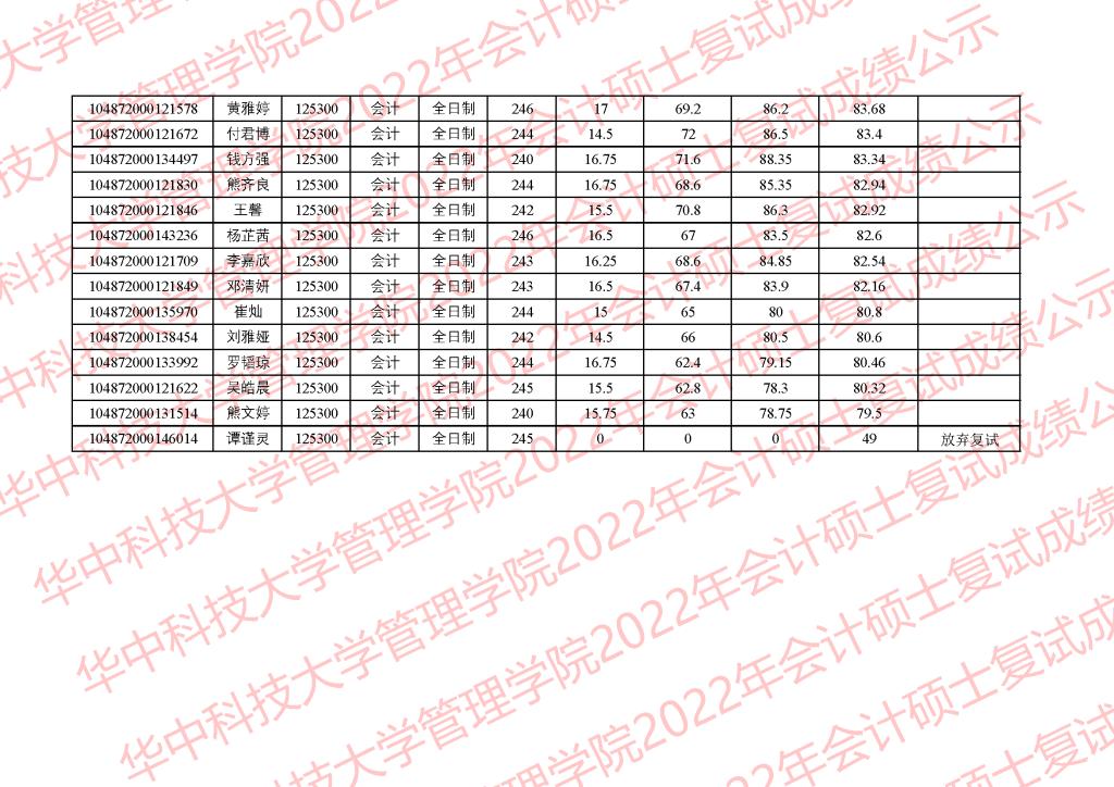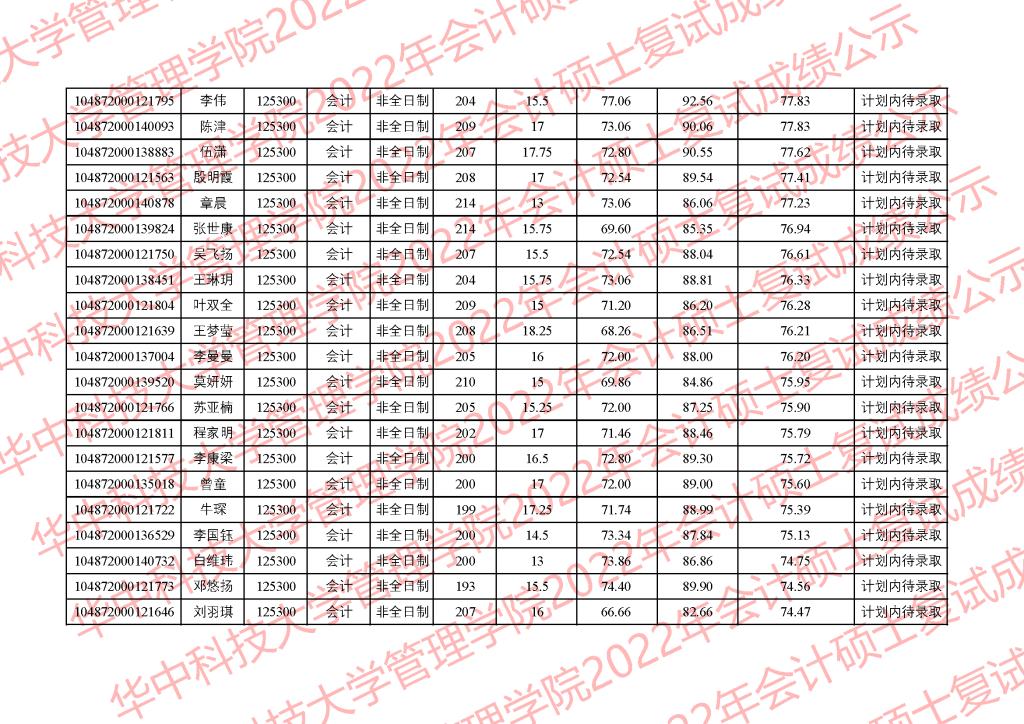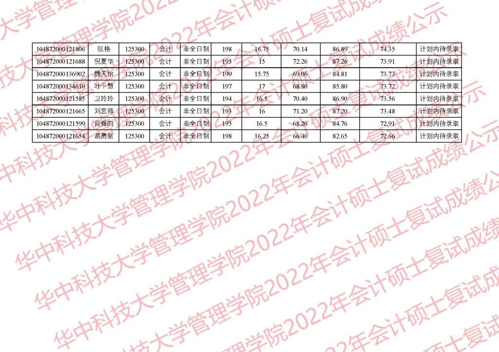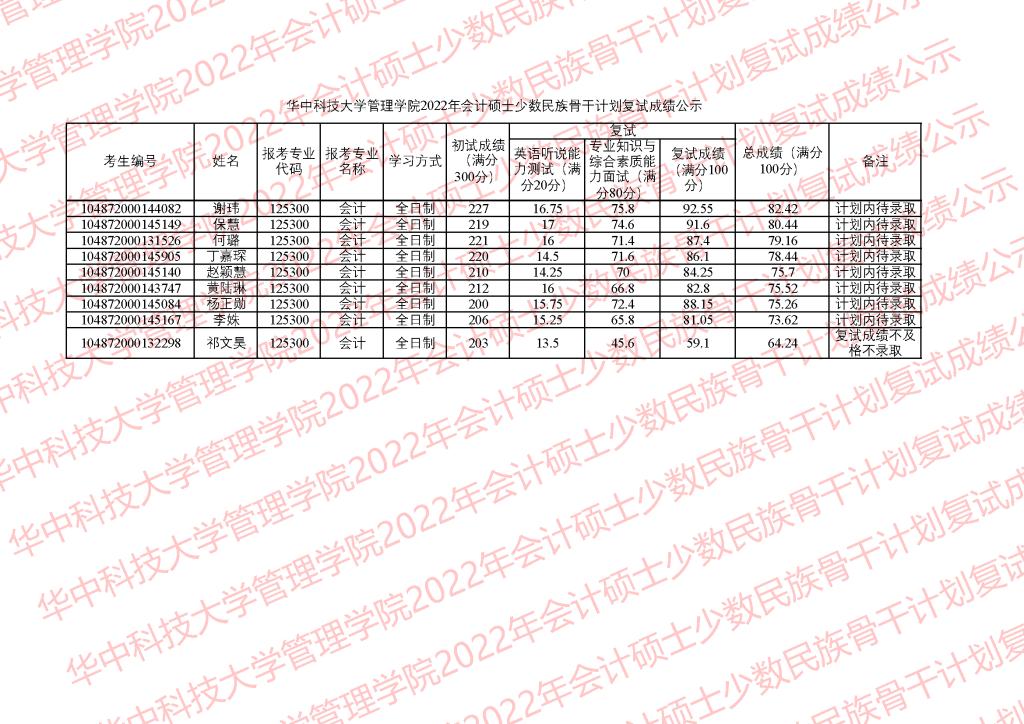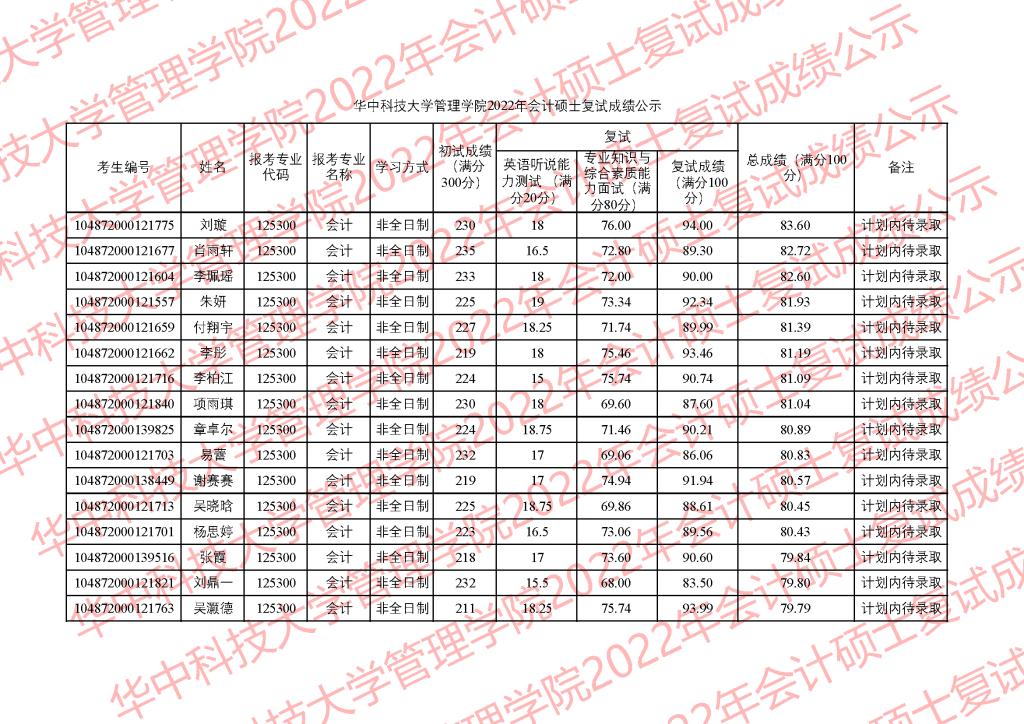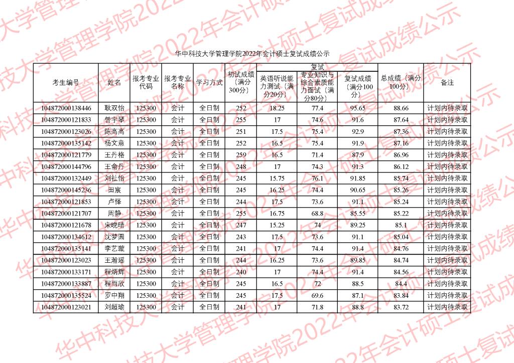 公示时间为3月28日-4月1日。公示期间,学院监察组接受考生监督和申诉,监察组邮箱glxy@hust.edu.cn。