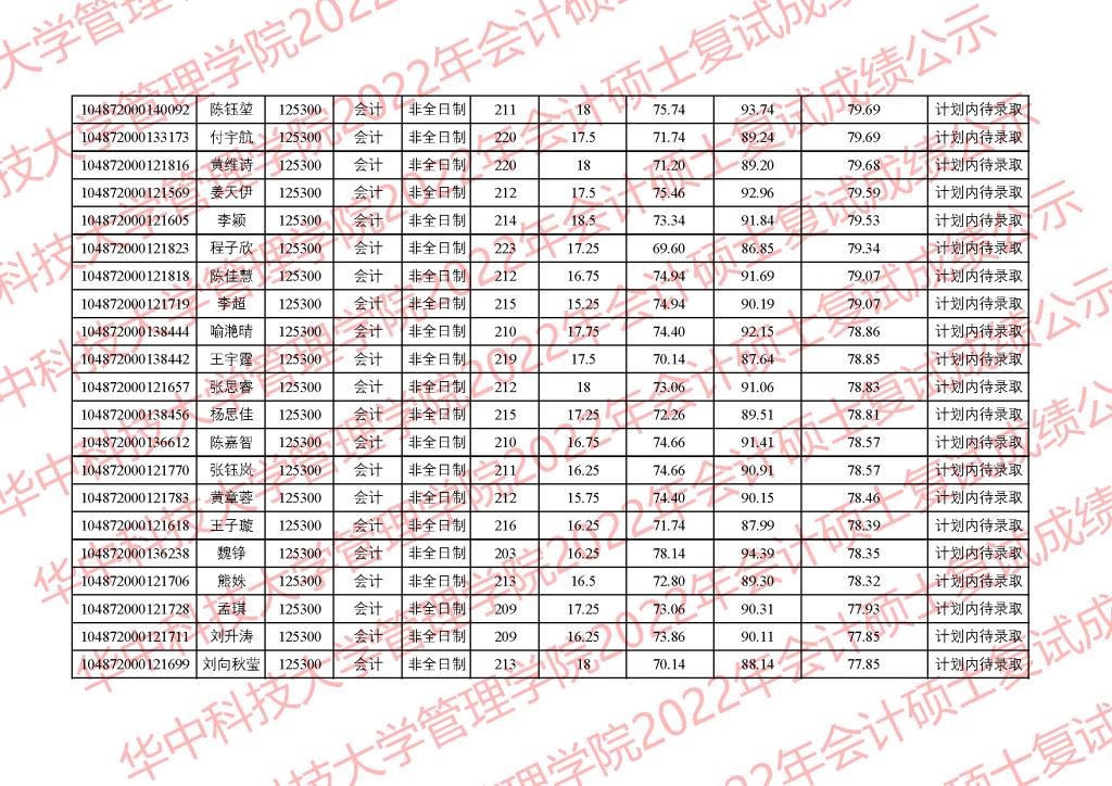 根据总成绩排序,会计专业依次从高分到低分,计划内待录取。如公示名单中计划内待录取的考生自愿放弃,我们将尊重个人志愿,按照总成绩从高到低往后顺次待录取。
