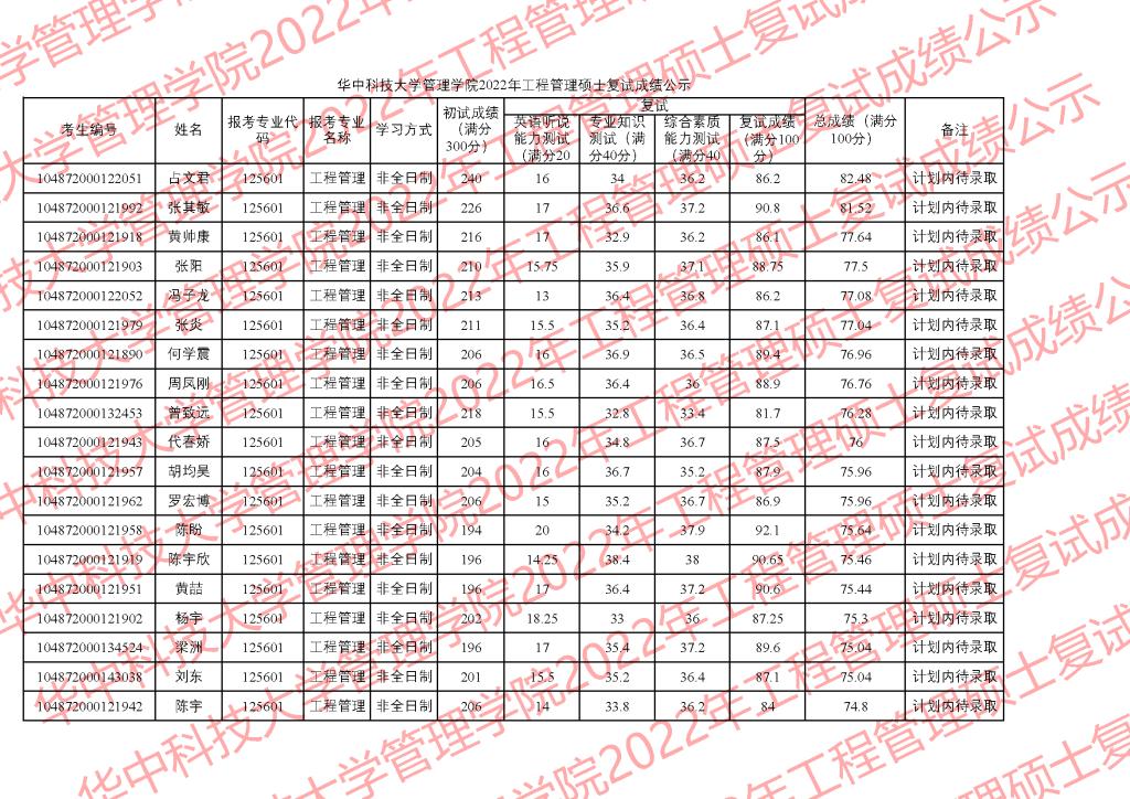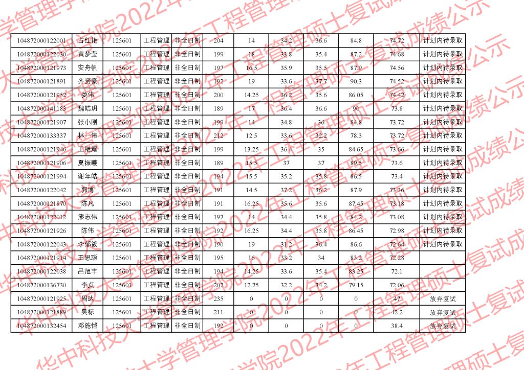 根据总成绩排序,工程管理专业依次从高分到低分,计划内待录取。如公示名单中计划内待录取的考生自愿放弃,我们将尊重个人志愿,按照总成绩从高到低往后顺次待录取。