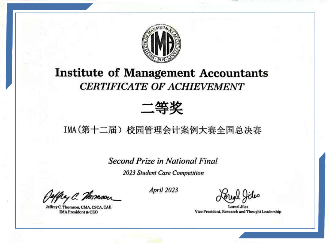 4月16日,IMA(第十二届)校园管理会计案例大赛全国总决赛在上海市普华永道前滩总部成功举办。全国七大赛区共有272支队伍参加区域赛,经过激烈的角逐共有6支队伍胜出,并代表各区域晋级全国总决赛。我院MPAcc学生团队Sailing(团队成员:刘思璇、崔雨萌、陈海腾、曾子怡、宋晚晴,指导教师:吴文莉)脱颖而出,代表华中区出战,最终荣获全国总决赛二等奖的佳绩,刘思璇同学荣获最佳个人表现奖。