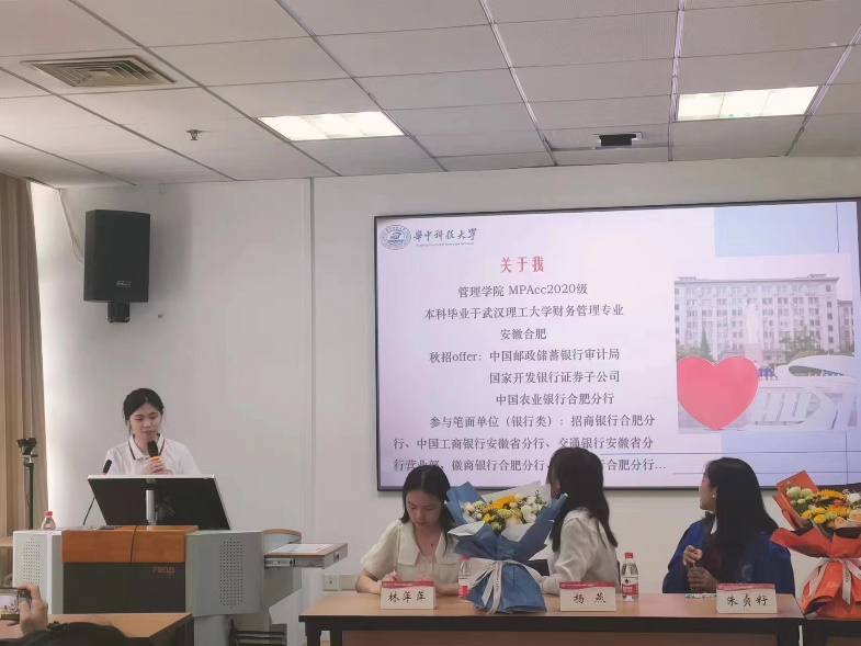首先,优秀毕业生代表们依次表达了自己在华科MPAcc读研期间的收获与心路历程,以及在实习经历、就业选择方面的建议。