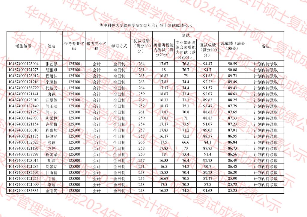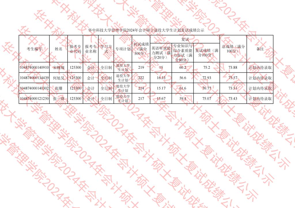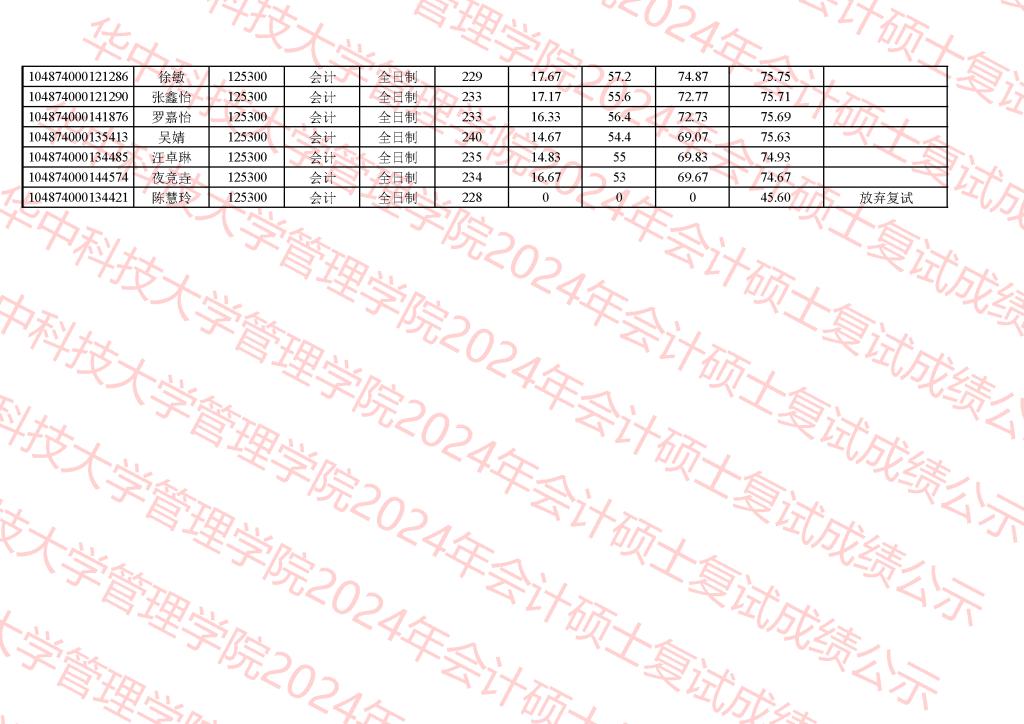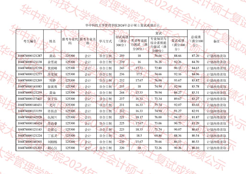 公示时间从4月1日-4月5日。公示期间,学院监察组接受考生监督和申诉,邮箱:glxy@hust.edu.cn。