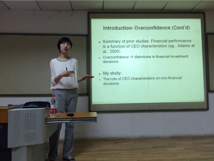 接下来,许慎提出了自己的研究发现:“CEO的过度自信对企业的CSR会有消极的影响,如果事前诉讼的风险相对较低,这种消极影响会更严重,但是过度自信对CSR的消极影响在CEO经历财务重组后会减小,而CEO的过度自信和CSR表现对企业将来的财务状况有一个联合的正影响。”