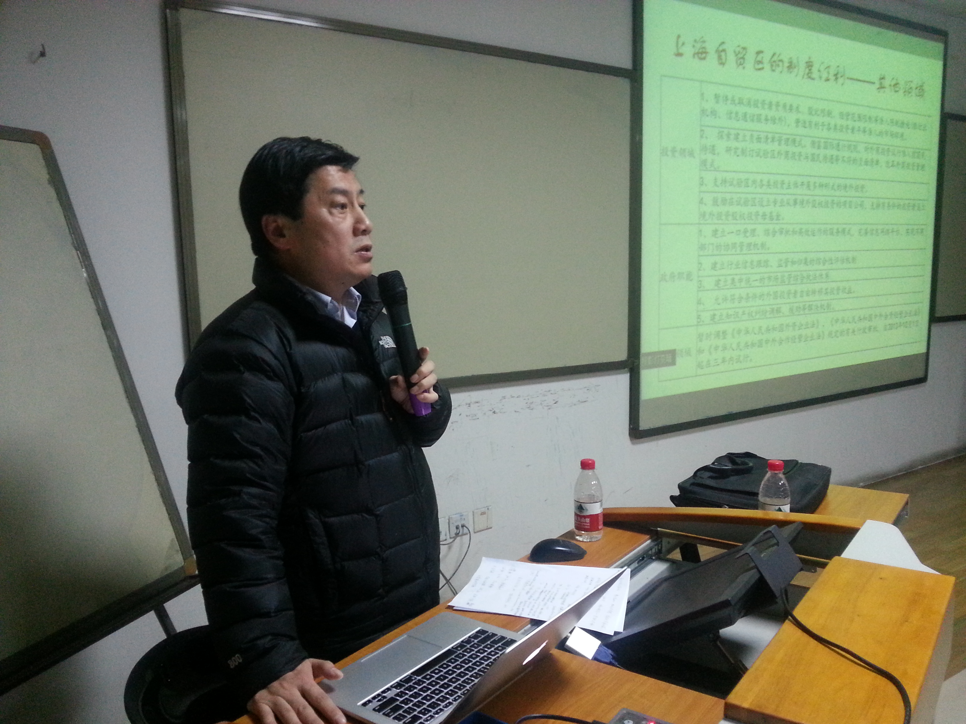 讲座中,郭庆华校友首先对上海自贸区成立的背景、区位、特色、社会评价向大家做了深入浅出的阐述,并对自贸区建立的目的以及对金融、贸易、投资、政府职能、法制等领域带来的制度红利做了详尽分析。随后,他结合自身从业经历,引入鲜活案例,就此次十八大三中全会关于全面深化改革,完善金融市场体系的精神,从中国金融体系特征、潜在金融风险、债券股票市场等诸多方面的问题和学员们进行了探讨。他认为,上海自贸区作为制度红利释放的载体,承担了探索中国经济增长方式的历史使命,中国金融改革任重而道远。
