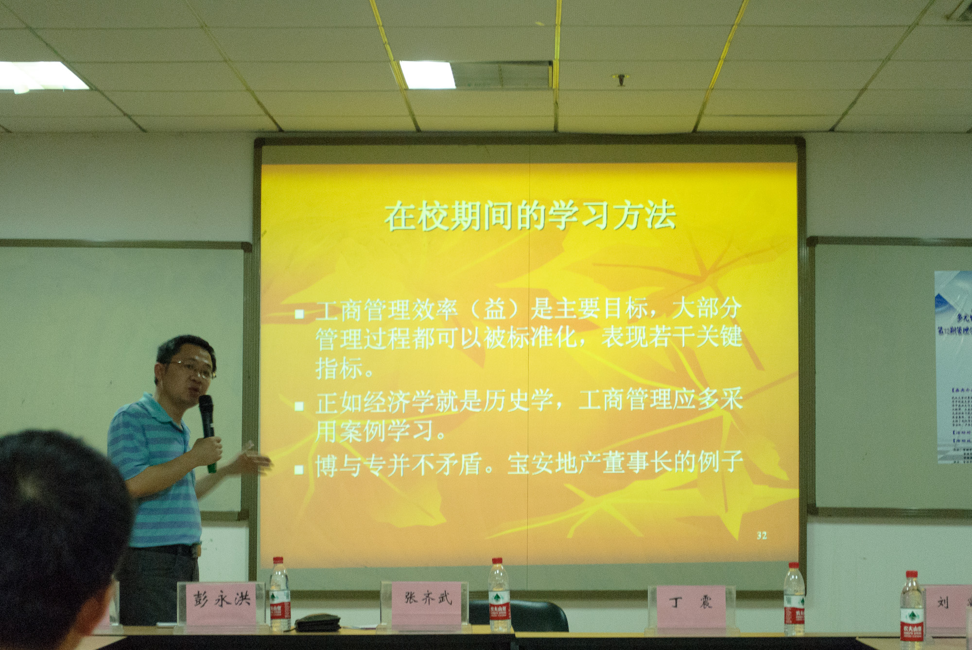 张齐武首先将企业与城市对比来说明管理是一个复杂的系统,引用李白、苏轼等人的诗篇来说明现代管理的多元性,使理性的话题多了一份诗意的韵味。张齐武指出工商管理具有多元性,并从唐僧取经和万科到阿里巴巴取经的故事得出必须跨界的结论。最后,张齐武提出的我们犯的三类错误——骑驴找驴,骑驴不肯下,黔之驴引发了同学们的深入思考。