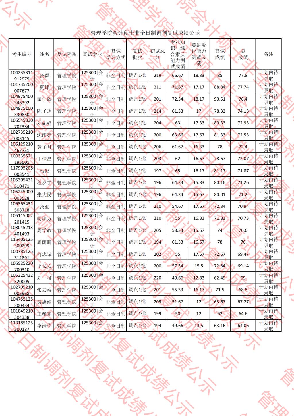 公示期间将通过系统发送待录取通知,考生须在规定时间内接收待录取,逾期视为放弃。公示时间4月11日-4月15日。公示期间,学院监察组接受考生监督和申诉。