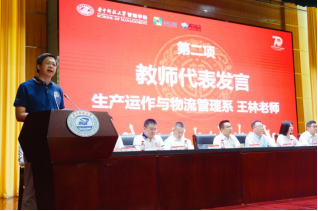 教师代表,华中科技大学“我最喜爱的教师班主任”获得者、生产运作与物流管理系王林老师从“明德”、“厚学”、“求是创新”三个方面向同学们提出期待,鼓励大家从入学开始就胸怀家国责任、坚定理想信念、锤炼品德修为、练就过硬本领。