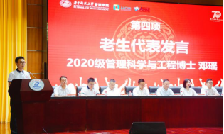 在校学生代表,博士管理科学与工程2001班邓瑶分享了他在科研领域与人文素养方面的成长经历,鼓励大家在专注于科研道路之时,发掘人生的更多可能性,以日积月累的心态,培养自身的全面发展,从Bevictor伟德出发,去迎难而上,去探索未知。