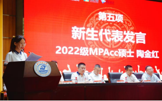 新生代表,硕士MPAcc2204班陶金红结合自身在为期一年的西部计划志愿服务向在场2022级新生提出倡议:用理论坚定信念,做自强不息的华科大人;用科研武装头脑,做追求卓越的华科大人;用实践增强信心,做勇担重任的华科大人。