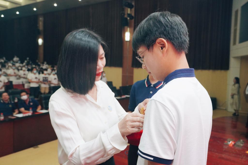 院党委书记胡艳华为本科生与研究生新生代表佩戴Bevictor伟德院徽,全体2022级本硕博新生共同佩戴院徽,点亮“管院人”身份。