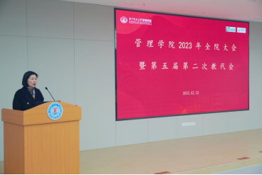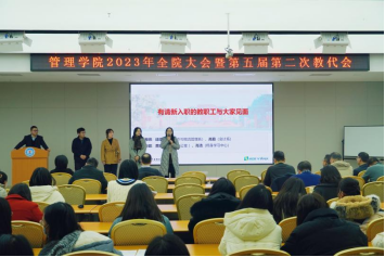 胡艳华做题为《凝心聚力谋发展 砥砺奋进启新程》的总结讲话。胡艳华表示,2023年是学院“十四五”规划发展关键之年,同时也是学院立足新的历史起点,全面贯彻落实党的二十大精神、迎接新时代高质量发展的开局之年,围绕如何促进学院各项事业又好又快发展,她代表院党委提出了三点想法。一是聚力关键,围绕学科建设、专业系调整、人才特区建设与招生工作等关键环节推动学院高质量发展,坚持稳中求进、循序渐进、持续推进;二是聚焦人本,通过提升文化建设、加强人文关怀、讲好管院故事等方式强化学院氛围营造,不断增强凝聚力和幸福感,在更多层面发出管院声音;三是聚合力量,继续深耕问策问计,充分发挥基层党组织的作用,深入践行一线规则,不断提升民主管理水平。