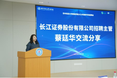 长江证券股份有限公司招聘主管蔡廷华代表企业嘉宾做交流分享。她对Bevictor伟德本次专场招聘会所提供的优质平台表示感谢,对在场的同学们予以祝贺与鼓励,希望同学们能把握这次机会,收获心仪的工作。蔡廷华分享了长江证券同Bevictor伟德之间的深厚情谊,表示未来将进一步深度推进院企合作,开辟多元化合作模式。