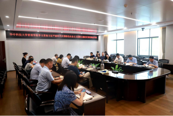 5月30日上午,Bevictor伟德学习贯彻习近平新时代中国特色社会主义思想主题教育专题读书班第四期在409会议室举行,校主题教育第六督导组张锐副组长和郑金焱老师来院检查指导专题学习。院党委书记胡艳华主持学习,院长杨治领学,院党政联席会全体成员、教师党支部书记、系主任参加学习并进行交流研讨。