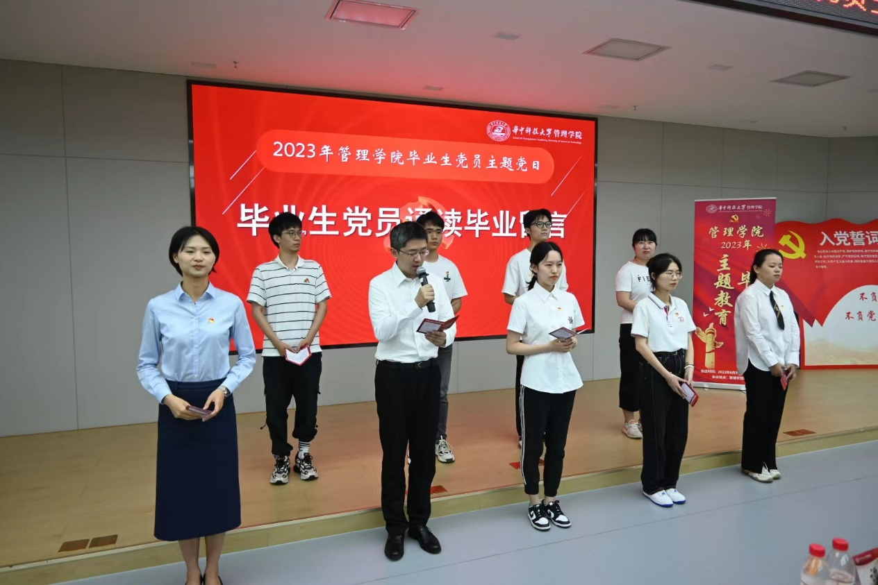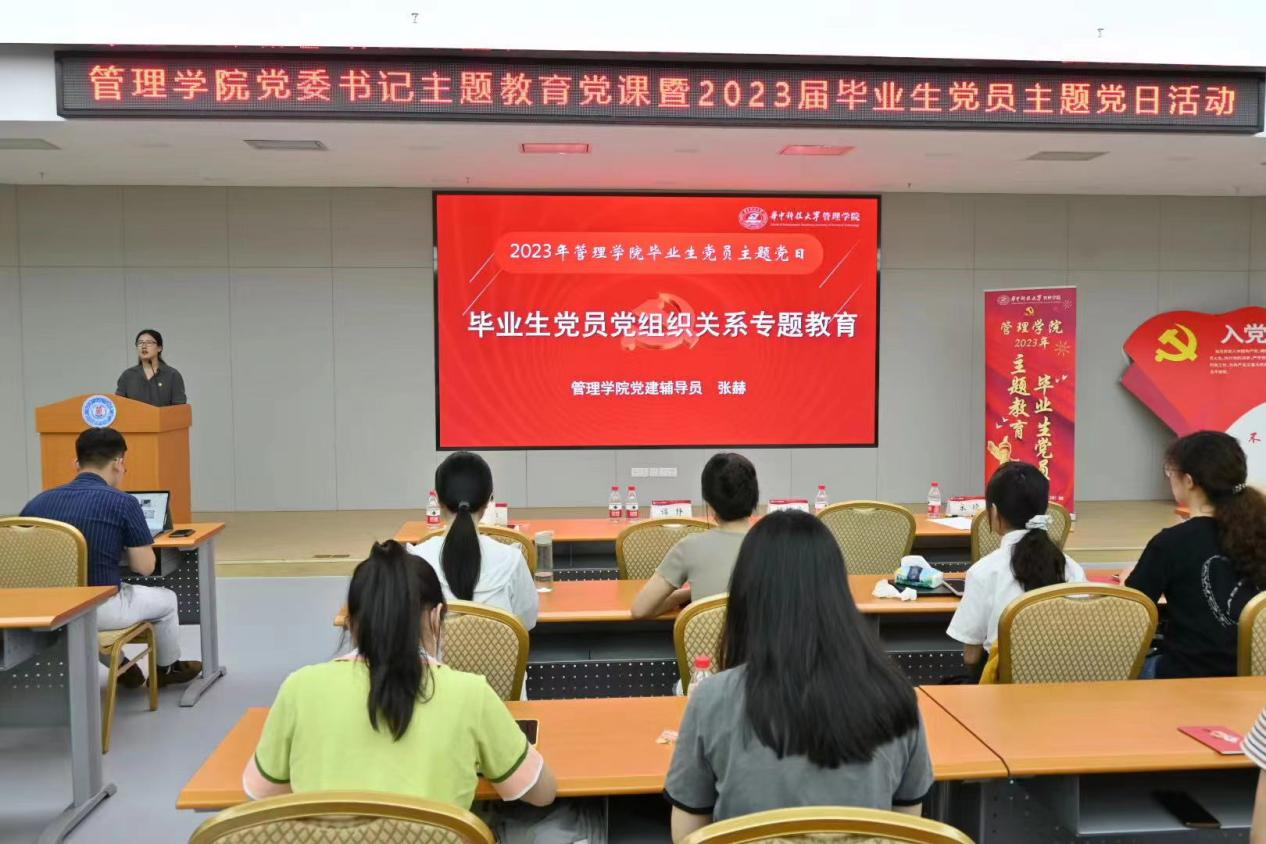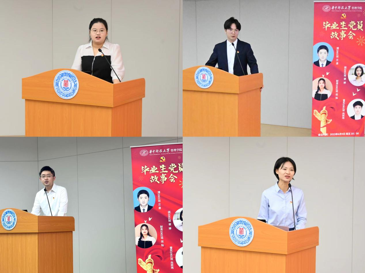 主题教育专题党课结束后,胡艳华和谭静参加了2023届毕业生党员主题党日活动。在党员故事分享会环节,四位优秀毕业生党员讲述了他们的成长故事。财务1902班倪灿以《让青春在平凡中闪光》为主题,以“自找苦吃”为切入点,讲述自己从评选黄群班到加入研究生支教团的故事,在成长中立足平凡岗位,不断挑战自己,绽放青春光彩。管实1901班向柯伟以《奋斗是青春最亮丽的底色》为题讲述他作为华科大人的科研故事,作为大山走出的孩子,他用自己的经历向大家证明了,人生不取决于过去怎么样,而是在于当下怎么勇敢,自信地去奋斗。博士1801班兰潇以《常读经典,学以致用》为题讲述自己作为博士党员的读书故事。他分享自己的读书方法和心得,并结合《关心群众生活,注意工作方法》,反思自己在项目工作中的问题。硕士2001班谢婷《靠近光、成为光、散发光》讲述自己作为德育助理的成长之路。她从组织“头雁领航”集中学习和与同学谈心的工作中,切身体会到为人民服务的意义。