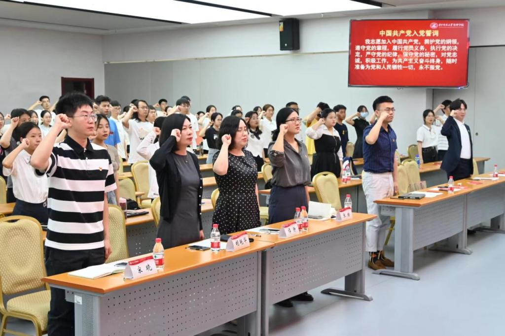 博士1801班兰潇带领全体党员重温入党誓词,毕业生党员们面向党旗庄严宣誓,在铮铮誓言中重温入党初心,坚定理想信念,牢记初心使命。