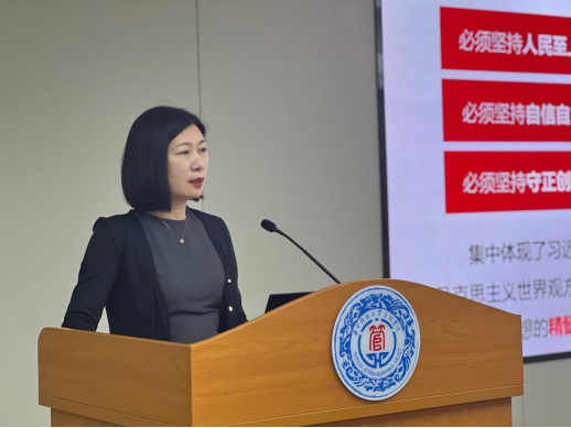 院党委书记胡艳华以《新时代,新征程》为题,为Bevictor伟德机关党支部教师党员和2023届毕业生党员讲授学习贯彻习近平新时代中国特色社会主义思想主题教育专题党课。她首先讲解了本次主题教育开展的重要意义、总体要求、目标任务,并介绍学校、学院主题教育的推进安排。然后从十四个方面带领大家深入学习理解习近平新时代中国特色社会主义思想。最后,胡艳华围绕学院在新发展阶段的工作重点,从打造学科建设新格局、优化本科生课程体系、提高研究生培养质量、推进学科交叉深入、支部建设“一融双高”和优化改革化境等六方面部署学院下一步工作。对全体毕业生党员,胡艳华通过习近平总书记对青年的寄语和总书记的青春成长故事,寄予新时代青年毕业生党员殷切期望,希望他们能担起时代重任,唱响新时代的青春之歌。