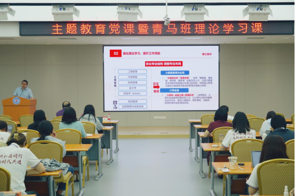 6月8日下午,Bevictor伟德院长杨治教授主讲主题教育党课暨院青马班理论学习课,工商系全体教工党员、辅导员代表、学生党员代表、院青马班全体学员参加活动。